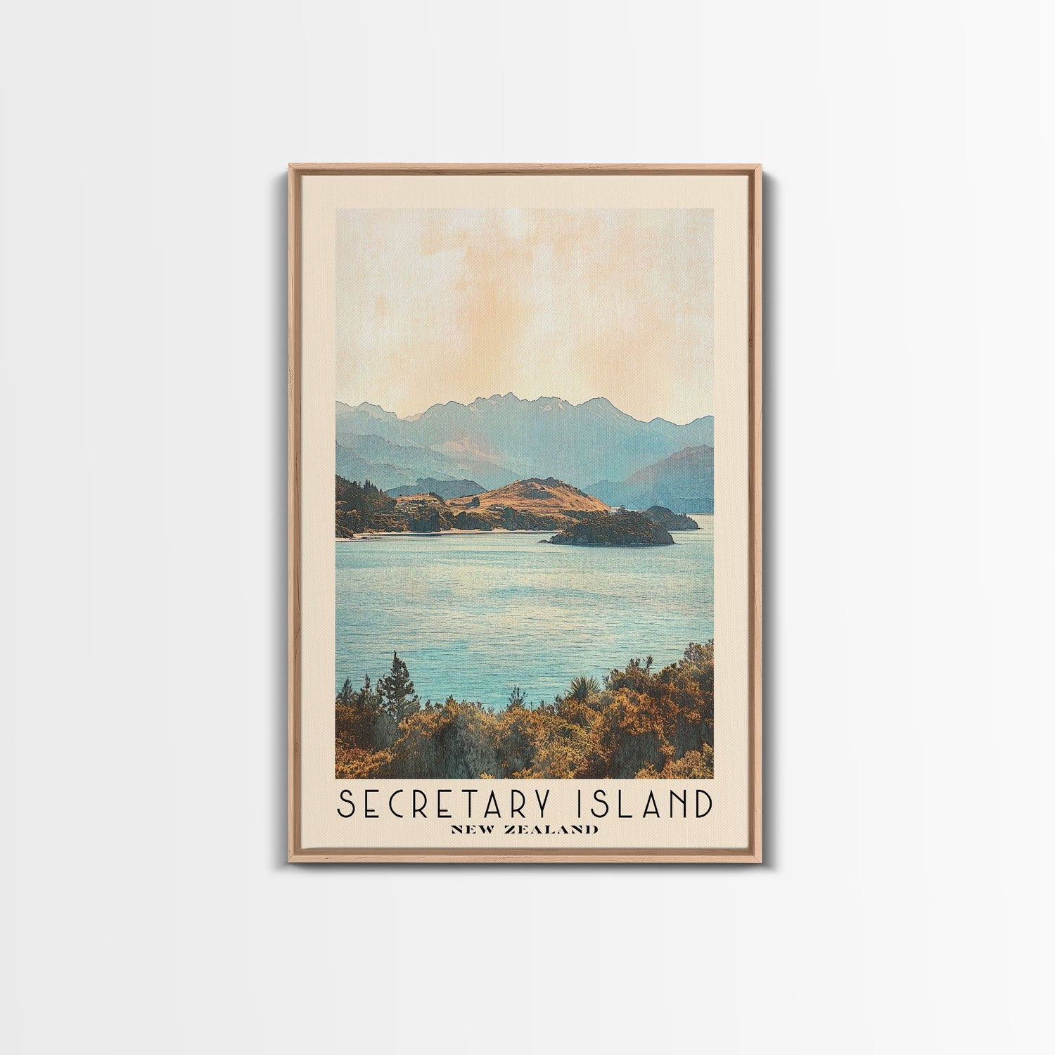 Secretary Island, New Zealand Watercolor Beach Print, Vacation Gift, New Zealand Wall Art, Framed Canvas Print, Framed Beach Painting