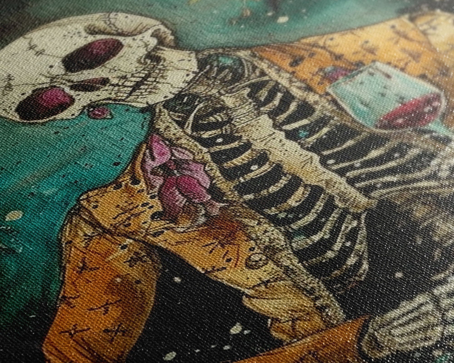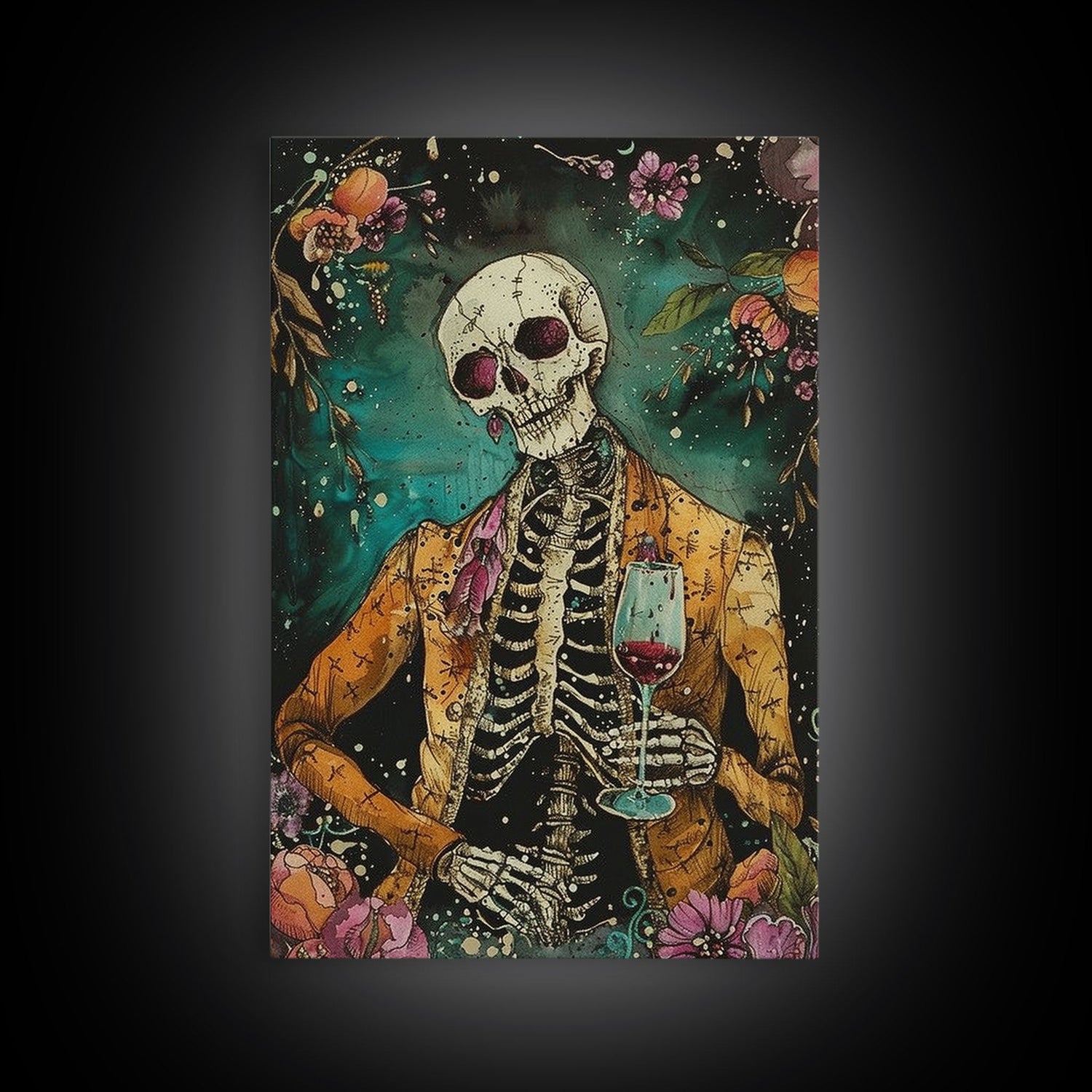 Skeleton Gentleman with Wine Glass Framed Canvas Print, Halloween Art, Creepy Wall Art, Spooky Home Decor, Scary Art, Unique Wall Decor - 8x12 Inches / No Frame - Stretched Canvas Only está agotado y se enviará tan pronto como vuelva a estar disponible.