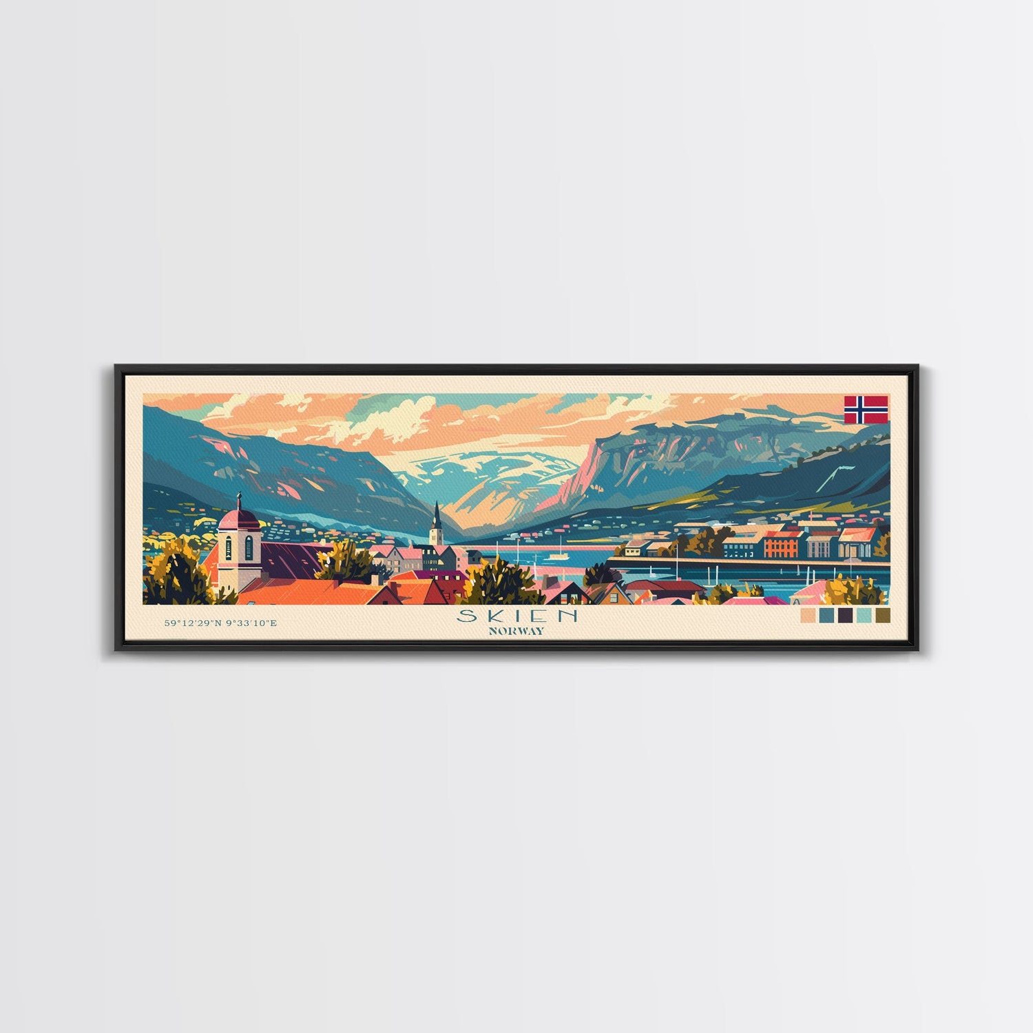 Skien Norway Travel Art, City Art, Framed Canvas Print or Metal Wall Art, Europe Travel Poster, Panoramic Wall Art, Extra Wide Wall Art