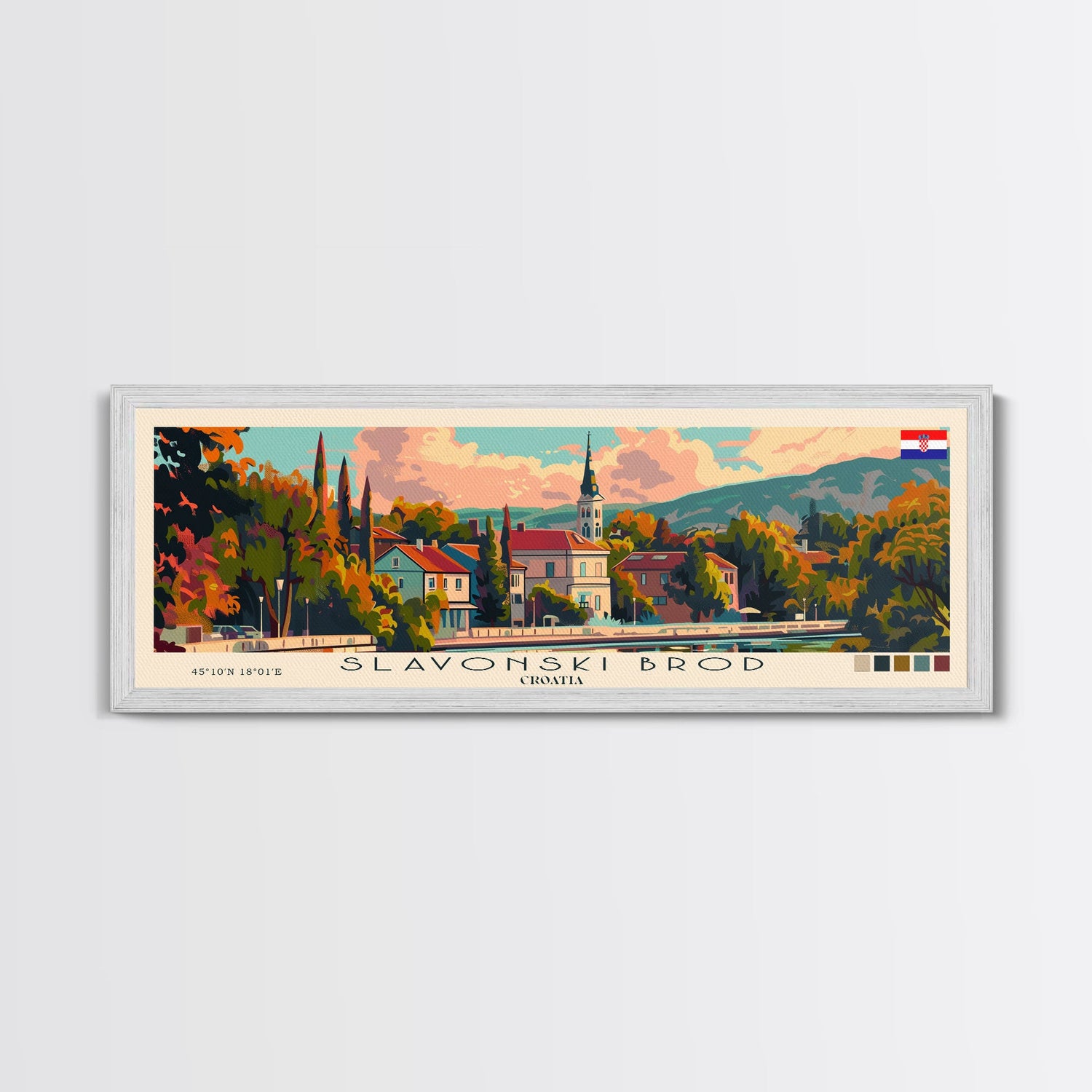 Slavonski Brod Croatia Panoramic Travel Poster, Framed Canvas Print or Metal Wall Art, Travel Art, Home Decor, Panoramic Painting, Midcentury Art