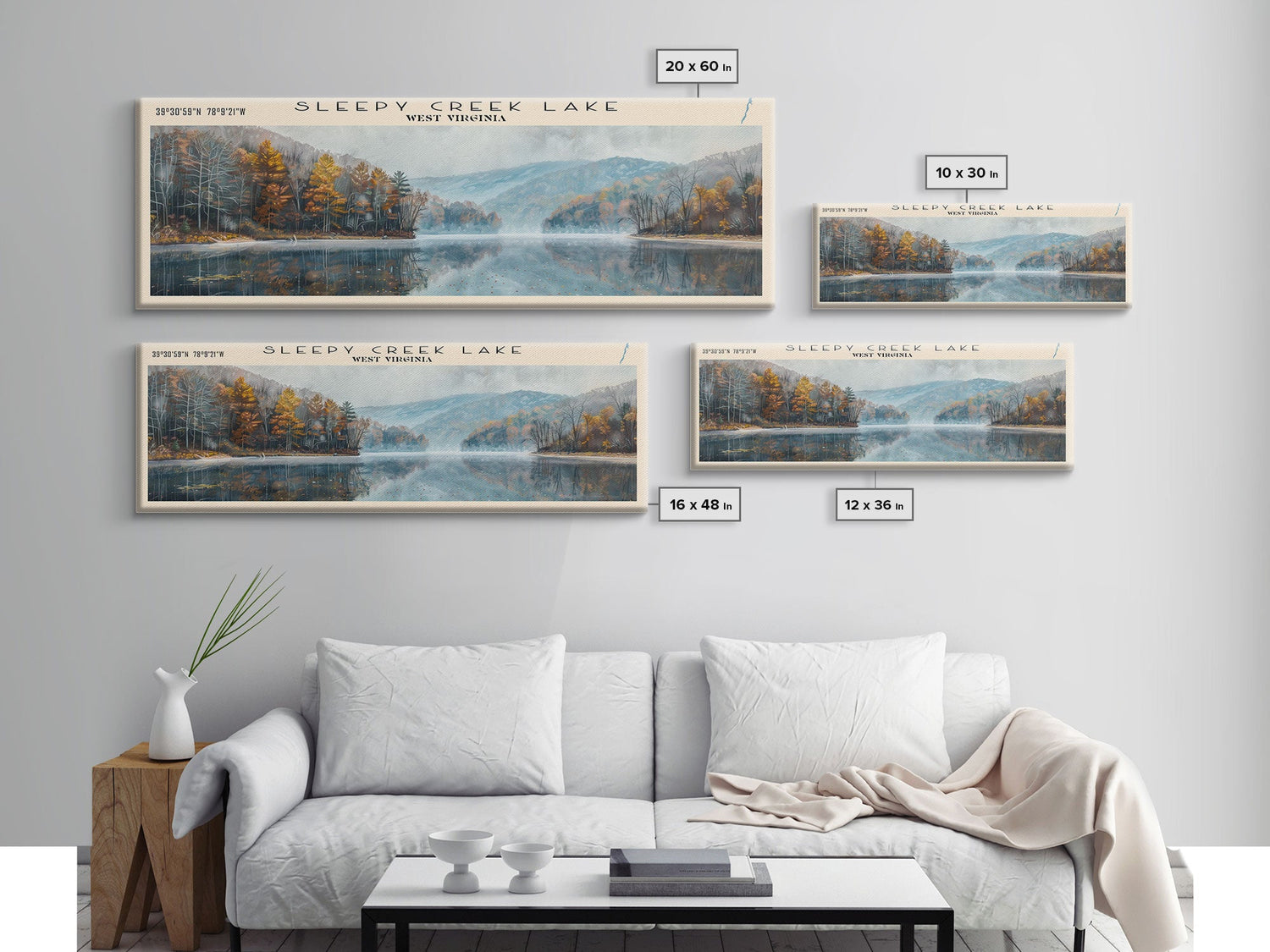 Sleepy Creek Lake West Virginia Panoramic Framed Canvas Print, Lake House Decor, Wall Art, Travel Poster, Serene Lake Painting, Living Room Decor