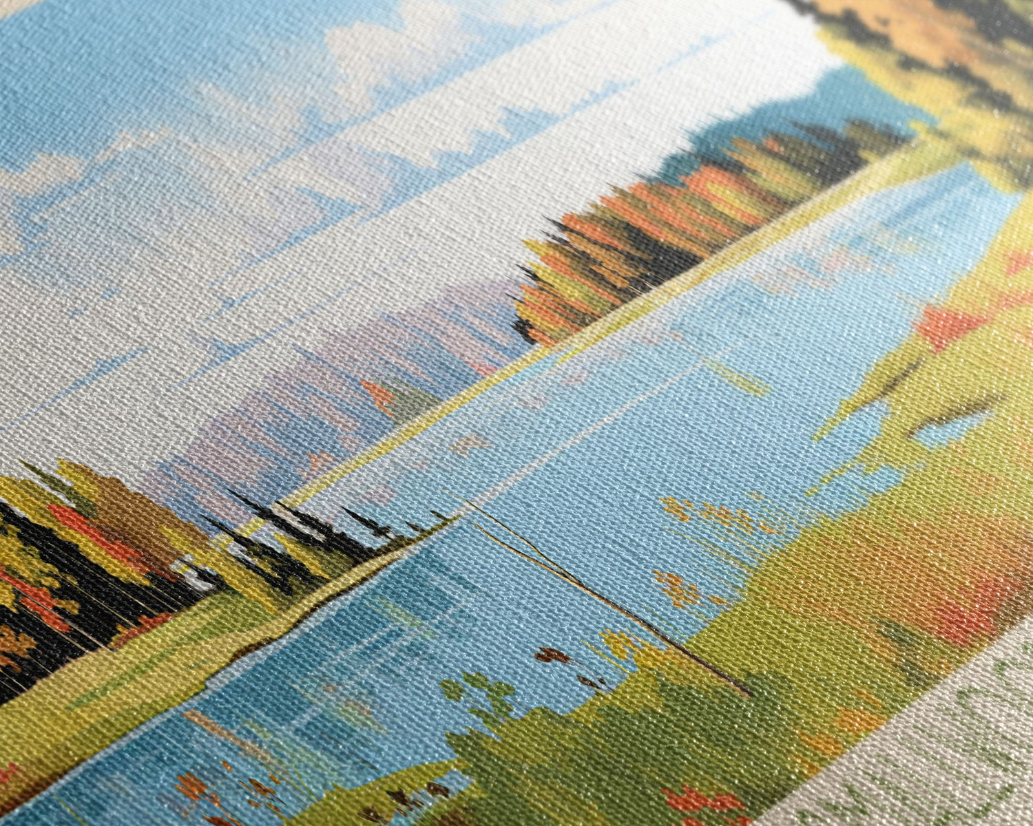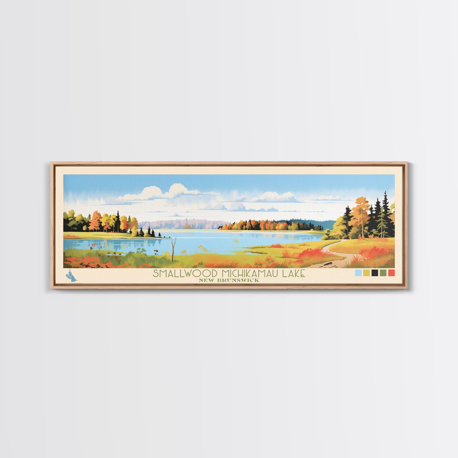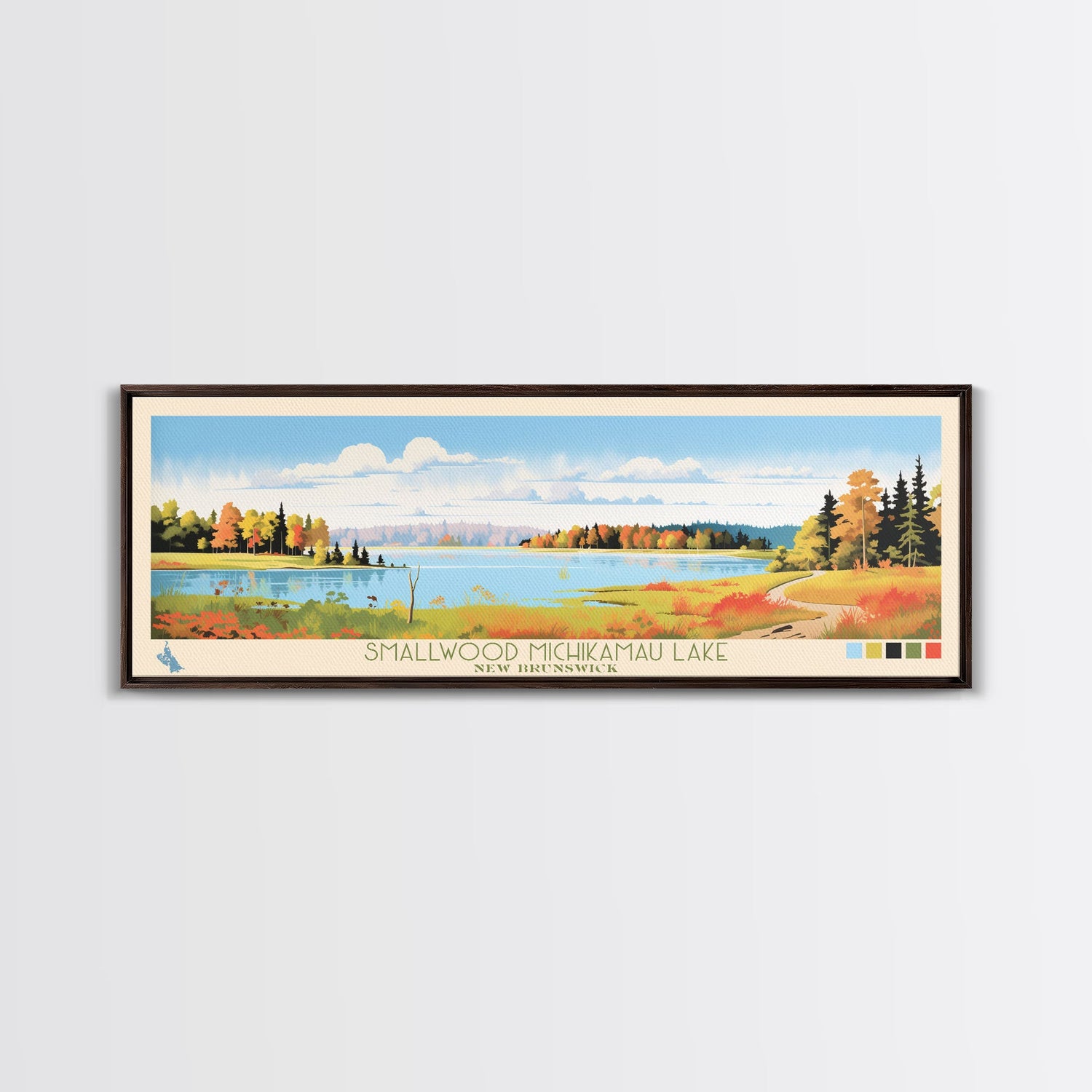 Smallwood Michikamau Lake, New Brunswick Framed Canvas Print, Lake House Art, Midcentury Modern Decor, Pop Art, Travel Poster, Living Room Wall Art