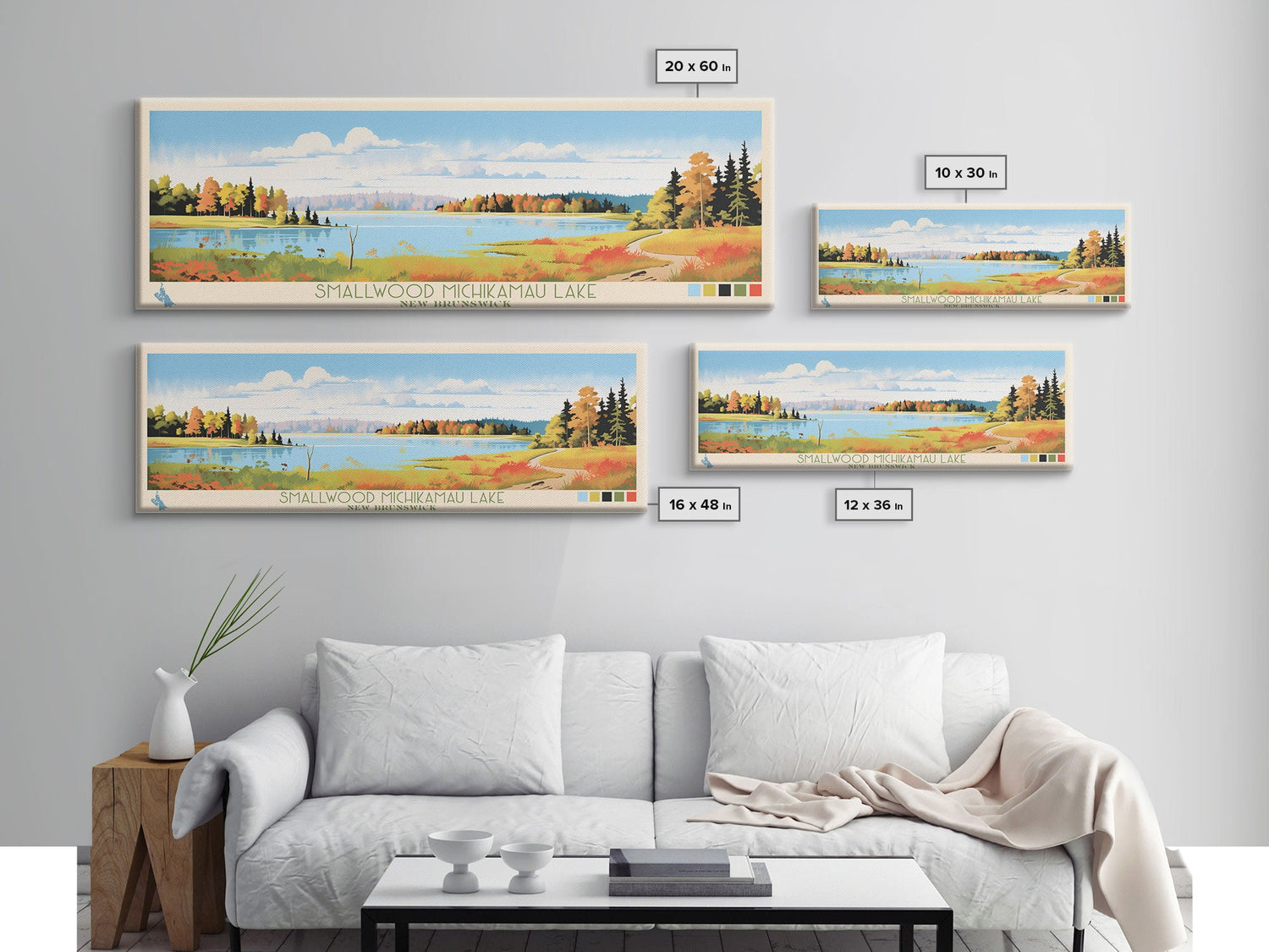 Smallwood Michikamau Lake, New Brunswick Framed Canvas Print, Lake House Art, Midcentury Modern Decor, Pop Art, Travel Poster, Living Room Wall Art - 10x30 Inches / No Frame - Stretched Canvas Only está agotado y se enviará tan pronto como vuelva a estar disponible.