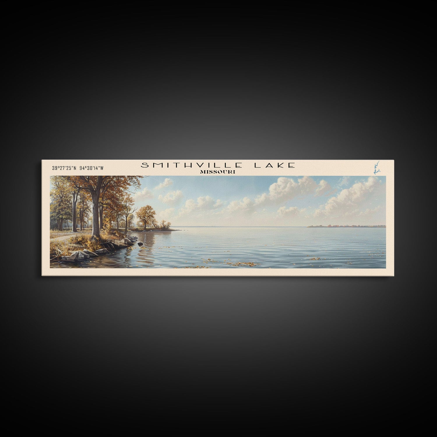 Smithville Lake Missouri Panoramic Framed Canvas Print, Lake House Decor, Wall Art, Travel Poster, Serene Lake Painting, Living Room Decor