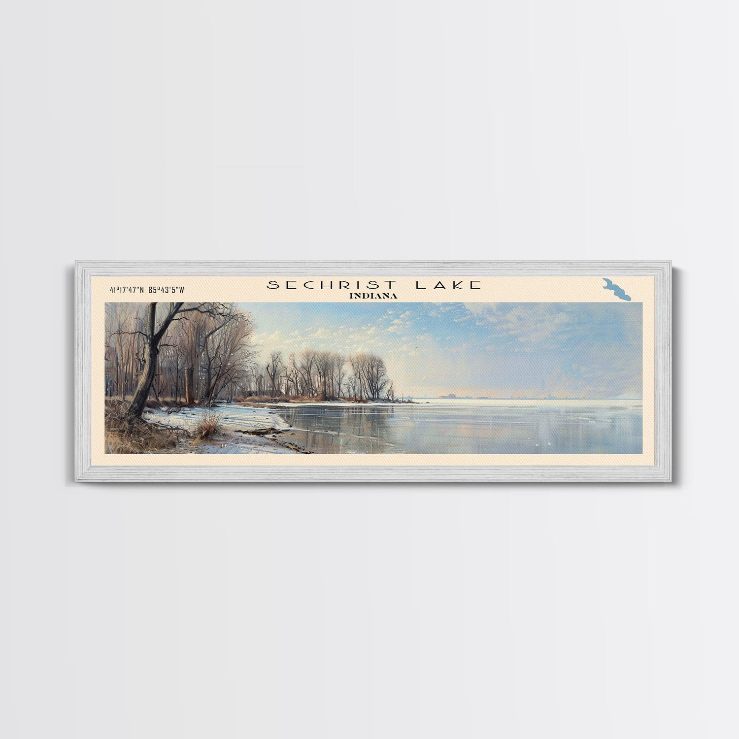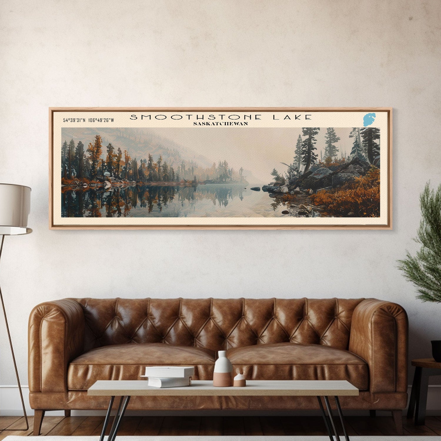 Smoothstone Lake Panoramic Framed Canvas Print, Lake House Decor, Wall Art, Travel Poster, Scenic Landscape, Living Room Decor, Beautiful Lake