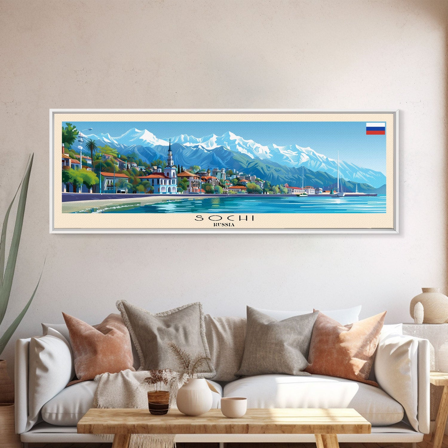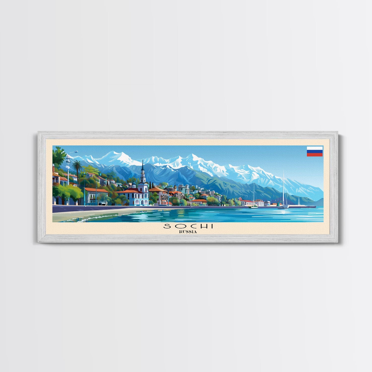 Sochi Russia Panoramic Travel Poster, Framed Canvas Print or Metal Wall Art, Travel Art, Home Decor, Panoramic Painting, Midcentury Art