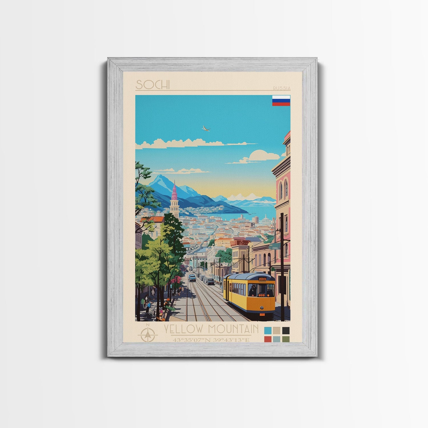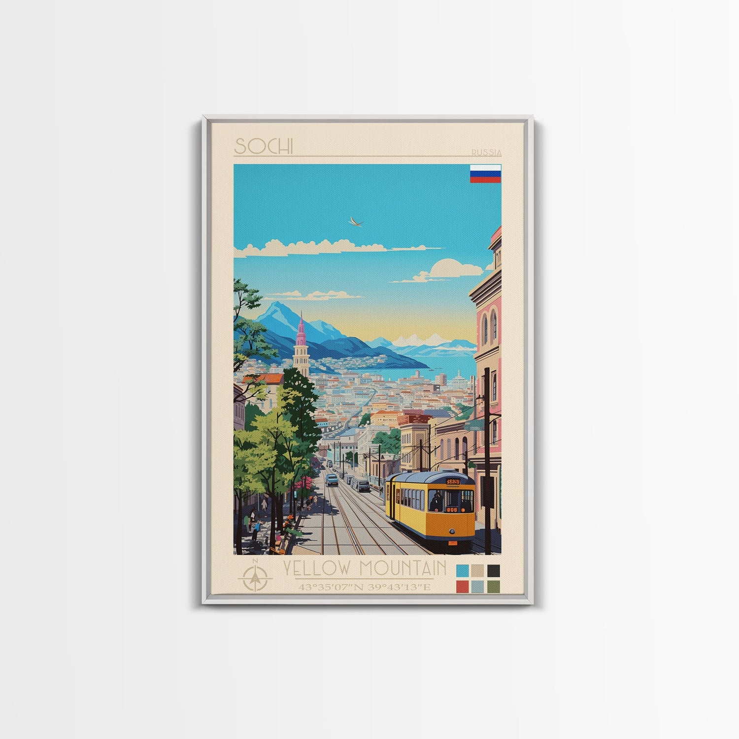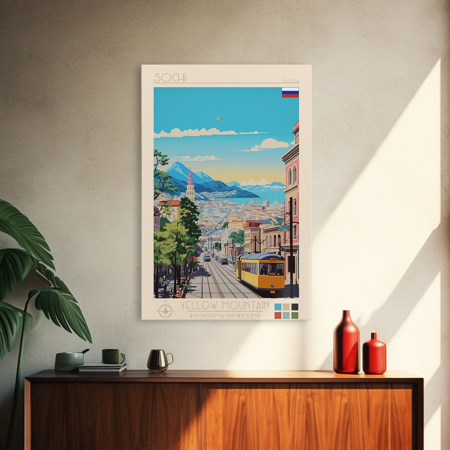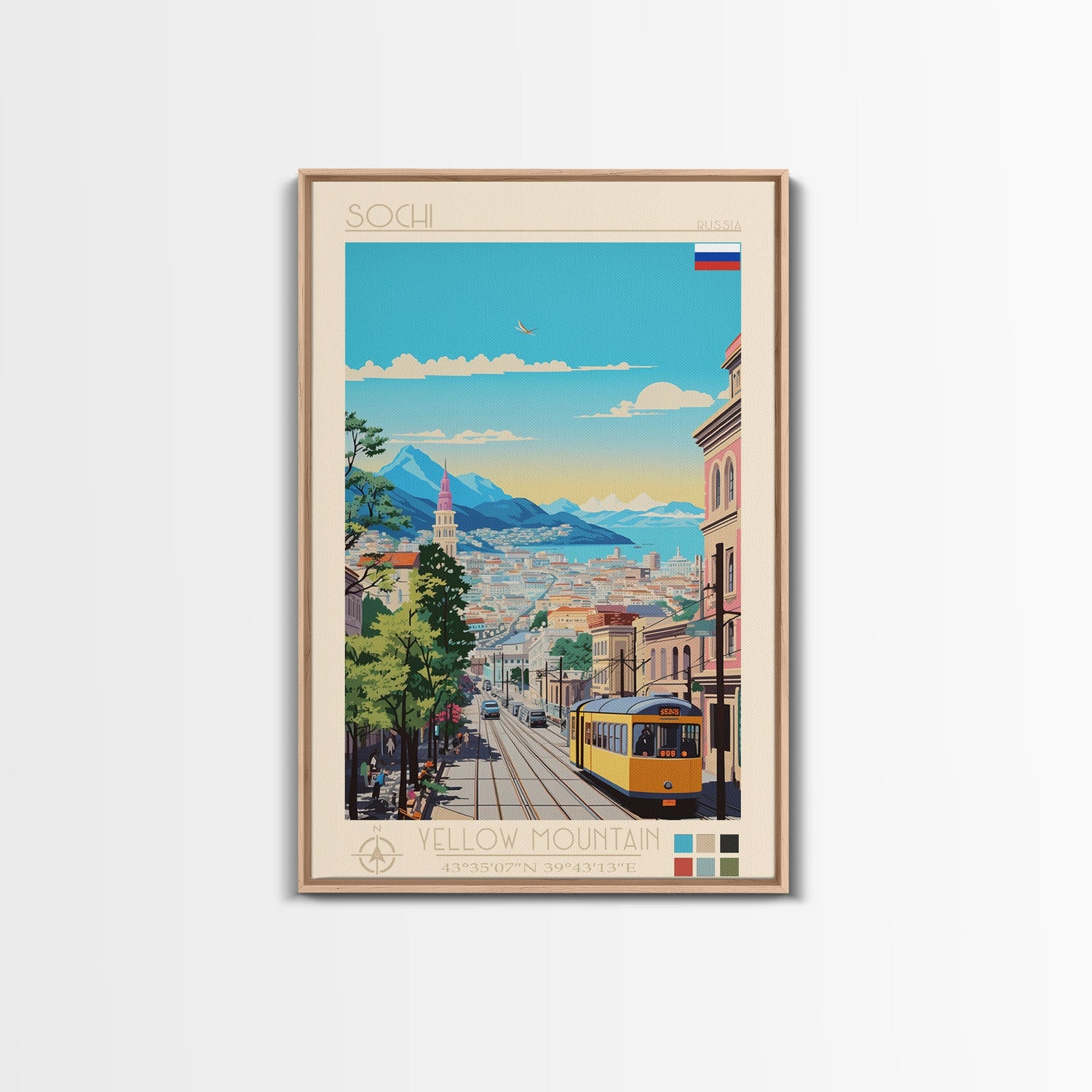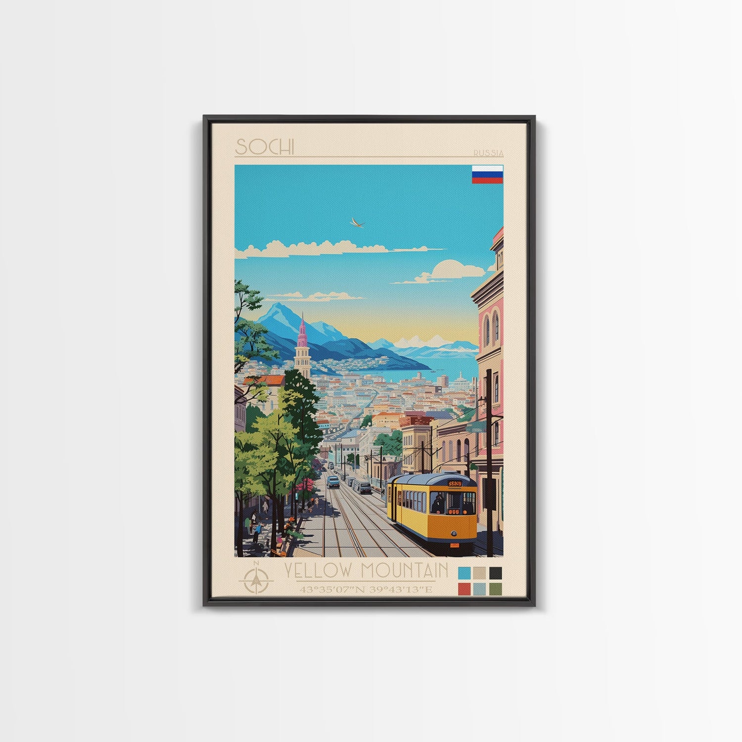 Sochi Russia Travel Poster Framed Canvas Print, Midcentury Modern Art, Pop Art Wall Decor, Living Room Art, Bedroom Decoration