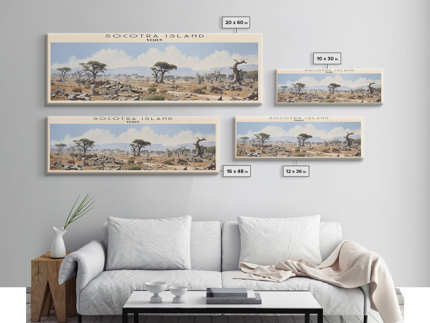 Socotra Island Framed Canvas Print Travel Poster | Wall Art | Home Decor | Gift For Travel Lover | Wall Hanging | Original Art - 10x30 Inches / No Frame - Stretched Canvas Only está agotado y se enviará tan pronto como vuelva a estar disponible.