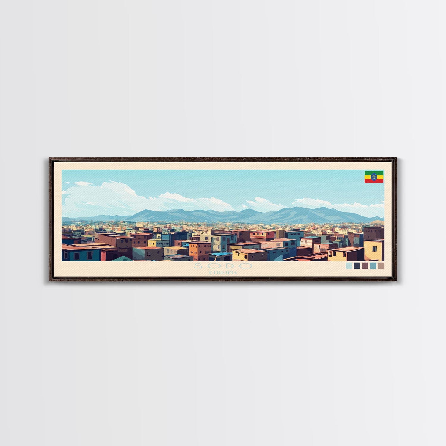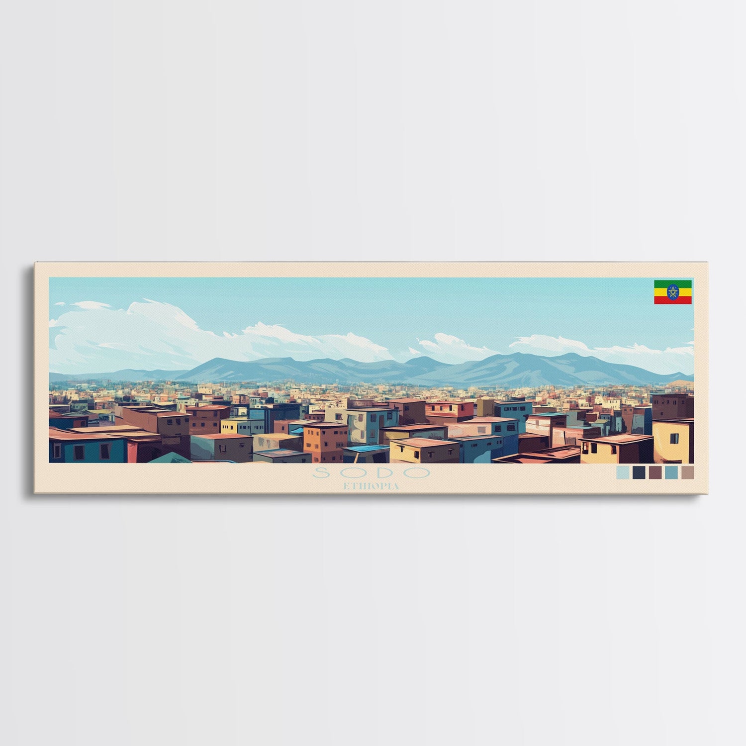 Sodo, Ethiopia Panoramic Travel Poster Canvas Print, Sodo, Ethiopia Painting, Ethiopia Art, Sodo Panoramic Travel Art, Travel Painting