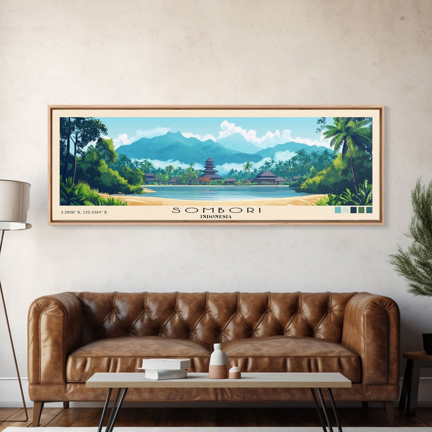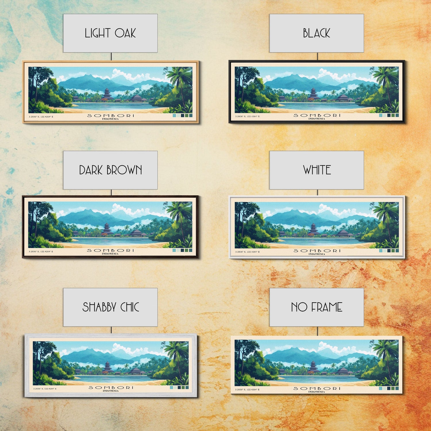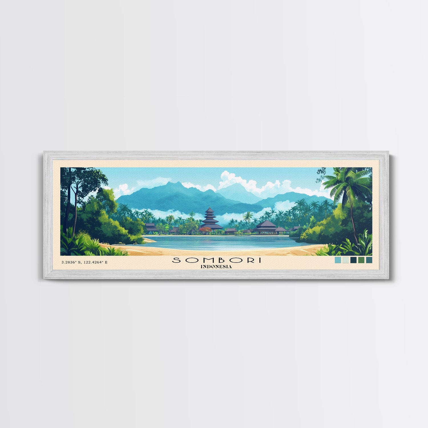 Sombori, Indonesia Panoramic Beach Print, Vacation Gift, Indonesia Wall Art, Beach Painting, Beach Decor, Beach Painting
