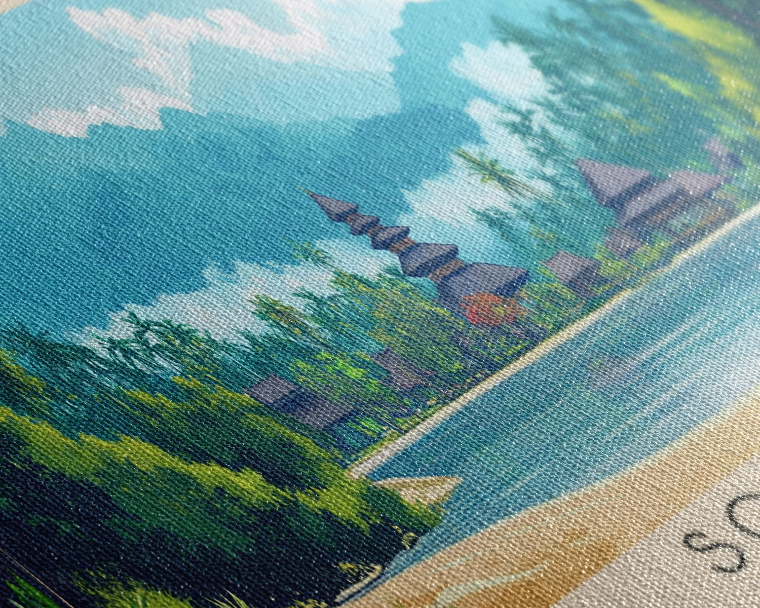 Most of our canvases are made in the USA, with the exception of canvases ordered with the light oak unstained frames, and any large canvases (24x48, 30x60, 16x48 and 20x60) ordered WITH a frame. These are temporarily made in and shipped from Europe, while we try to find a more consistent supplier in the USA.