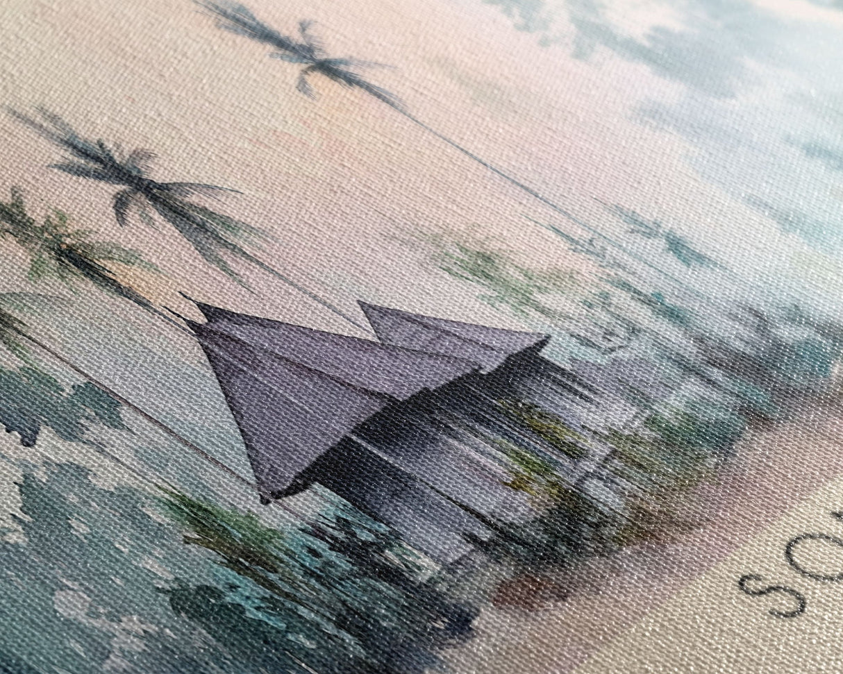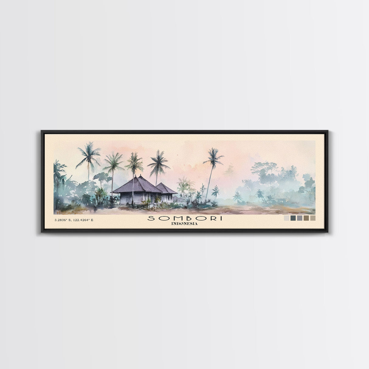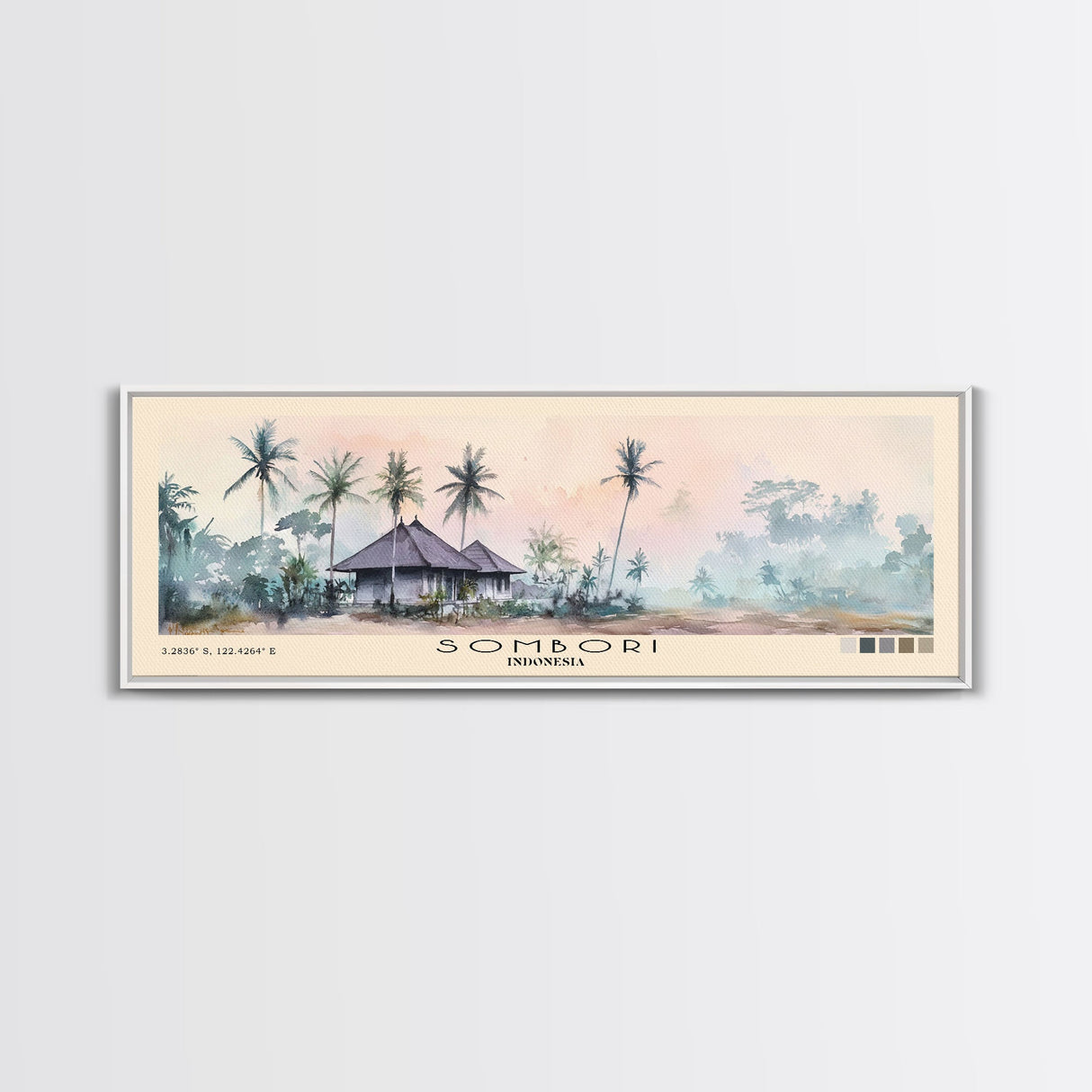 Sombori, Indonesia Watercolor Beach Print, Vacation Gift, Indonesia Wall Art, Framed Canvas Print, Framed Beach Painting
