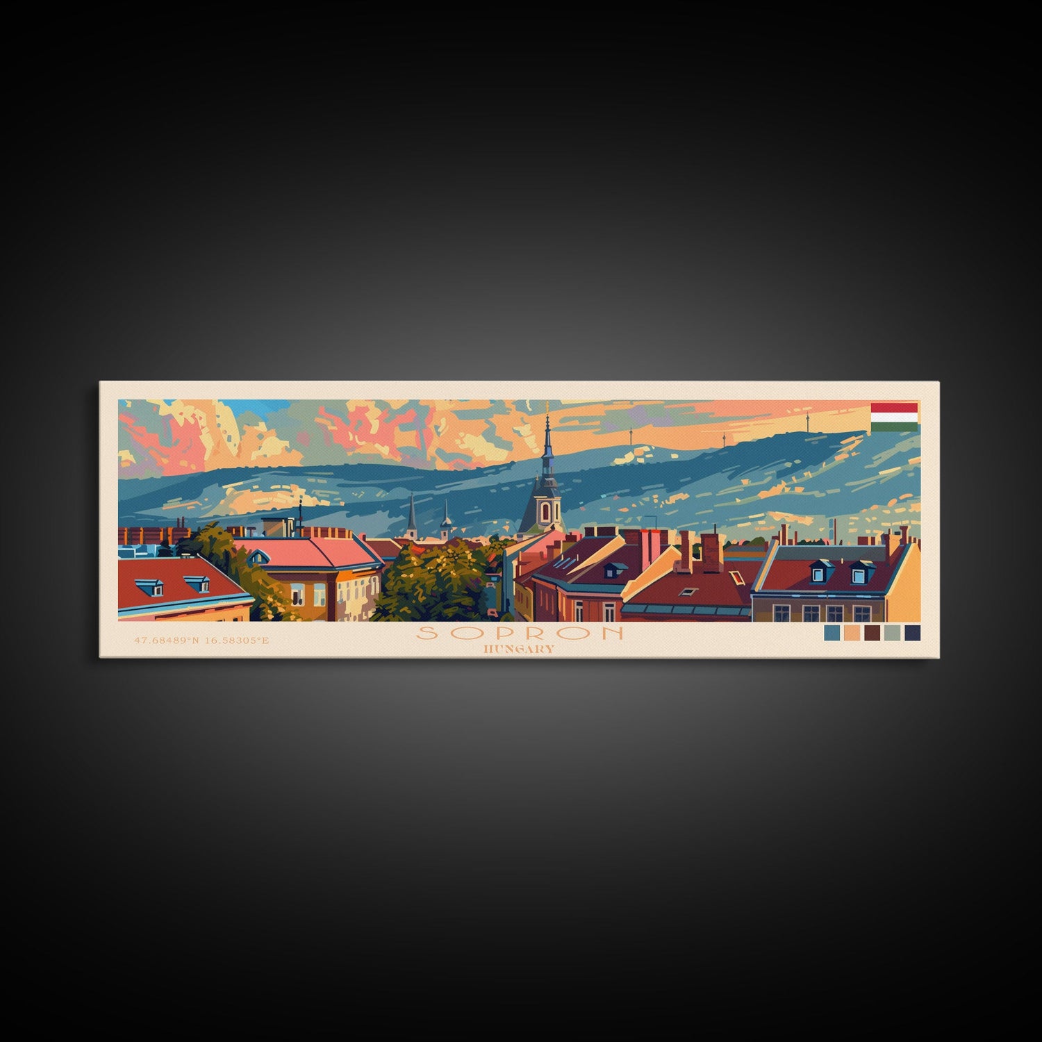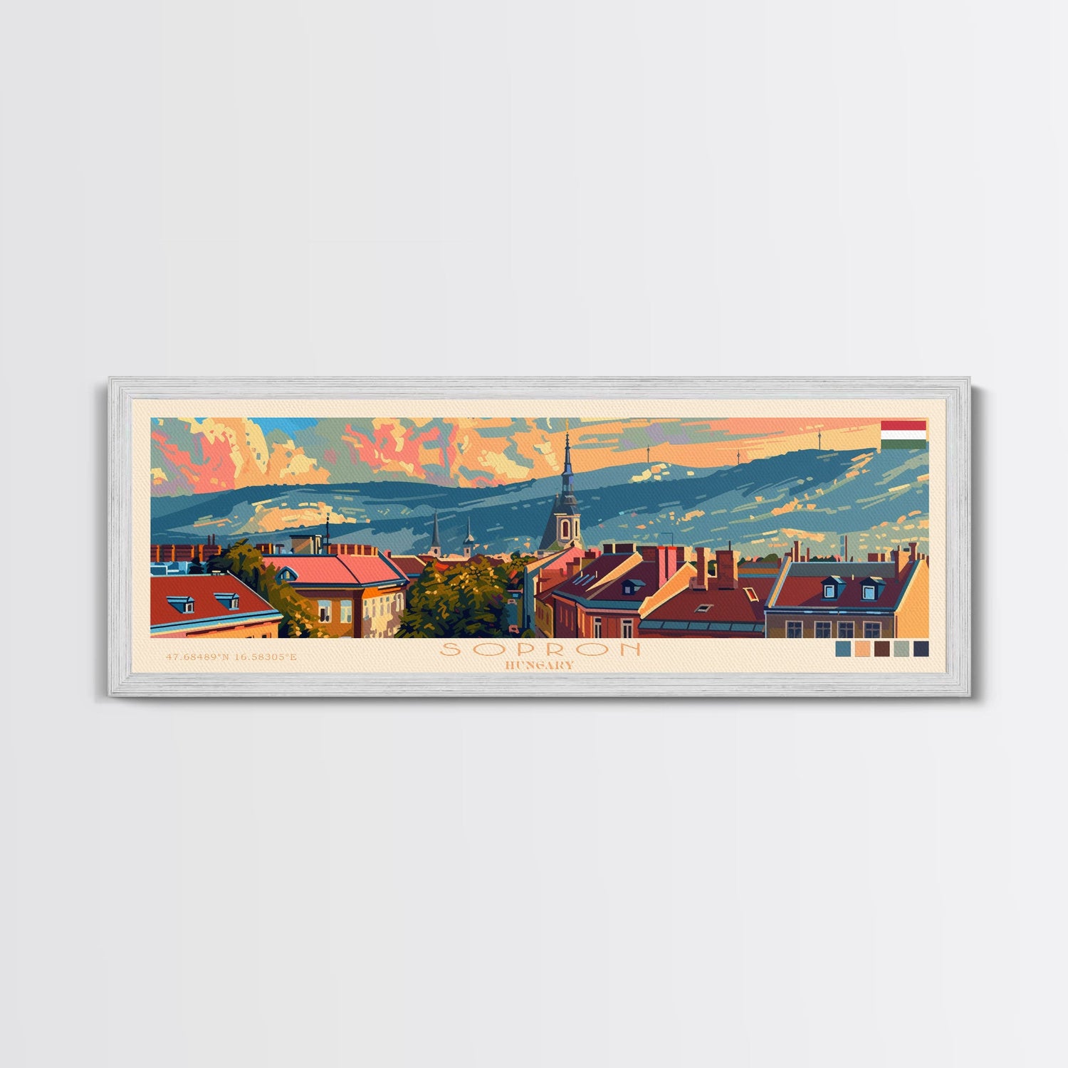 Sopron Hungary Travel Art, City Art, Framed Canvas Print or Metal Wall Art, Europe Travel Poster, Panoramic Wall Art, Extra Wide Wall Art