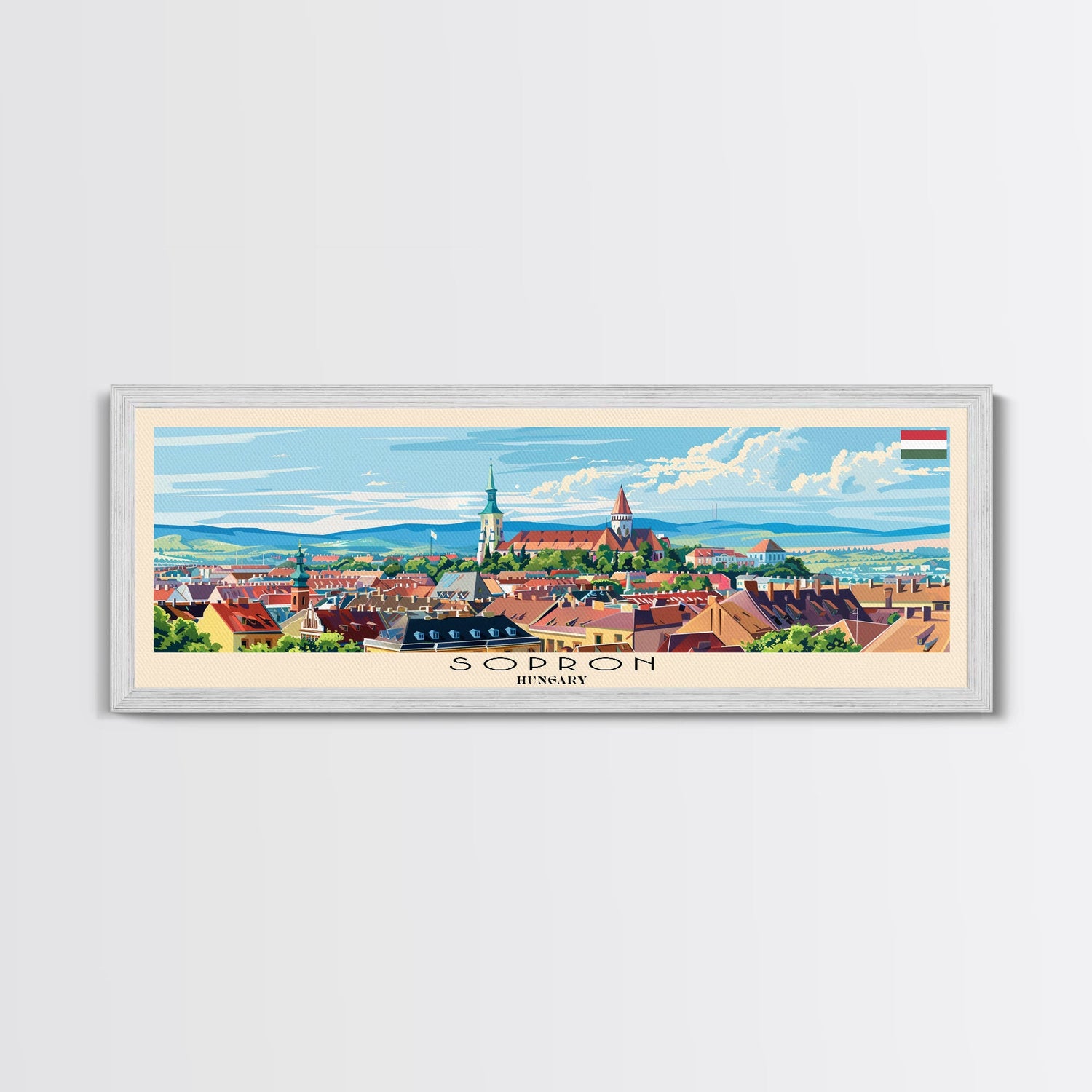 Sopron Hungary Travel Art, City Art, Framed Canvas Print or Metal Wall Art, Europe Travel Poster, Panoramic Wall Art, Extra Wide Wall Art