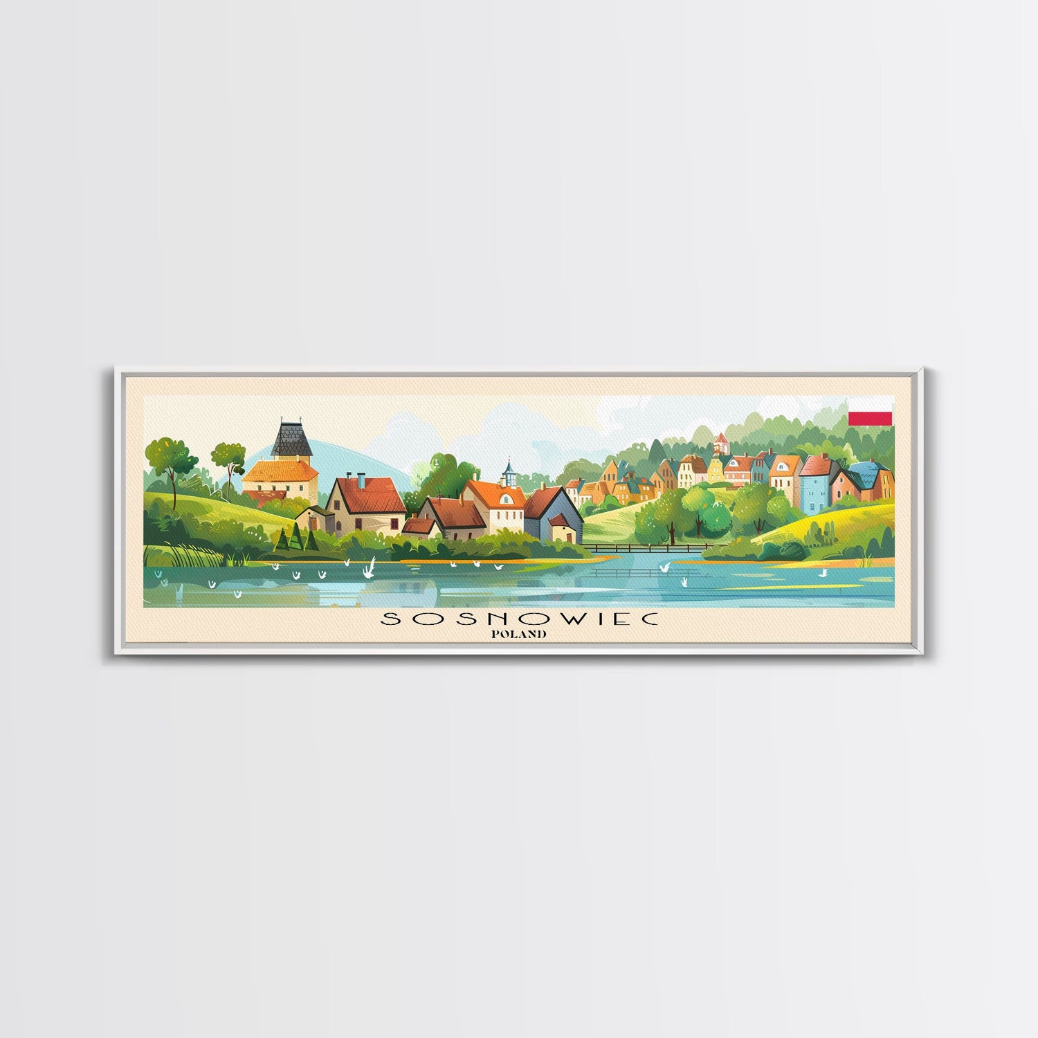 Sosnowiec Poland Panoramic Travel Poster, Framed Canvas Print or Metal Wall Art, Travel Art, Home Decor, Panoramic Painting, Midcentury Art