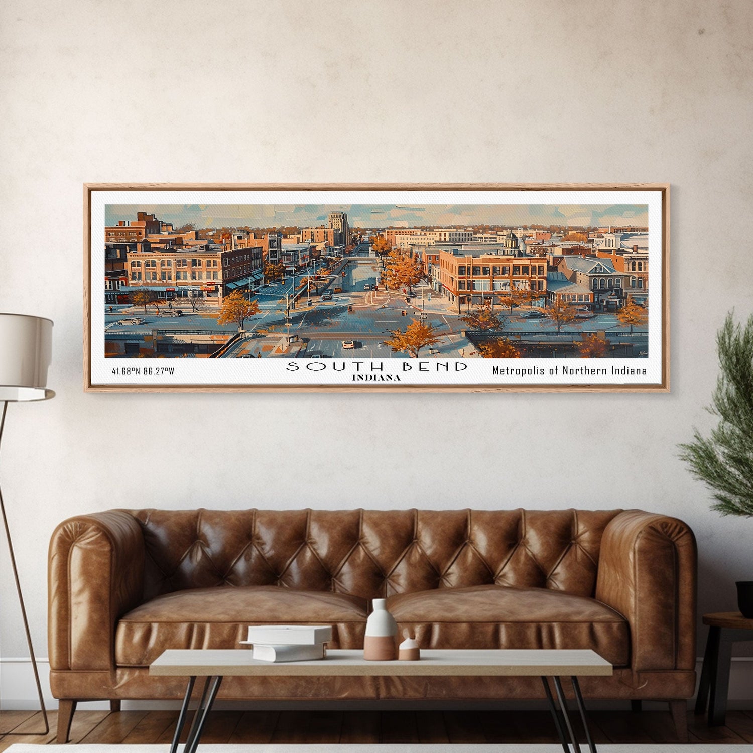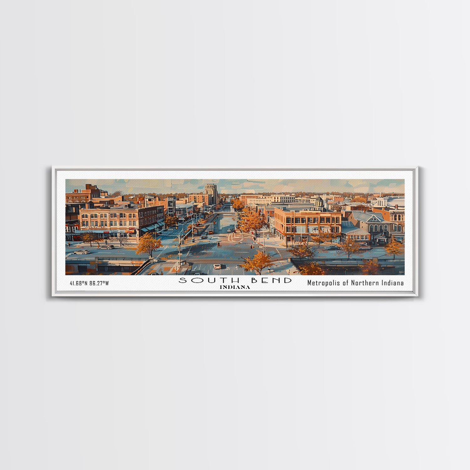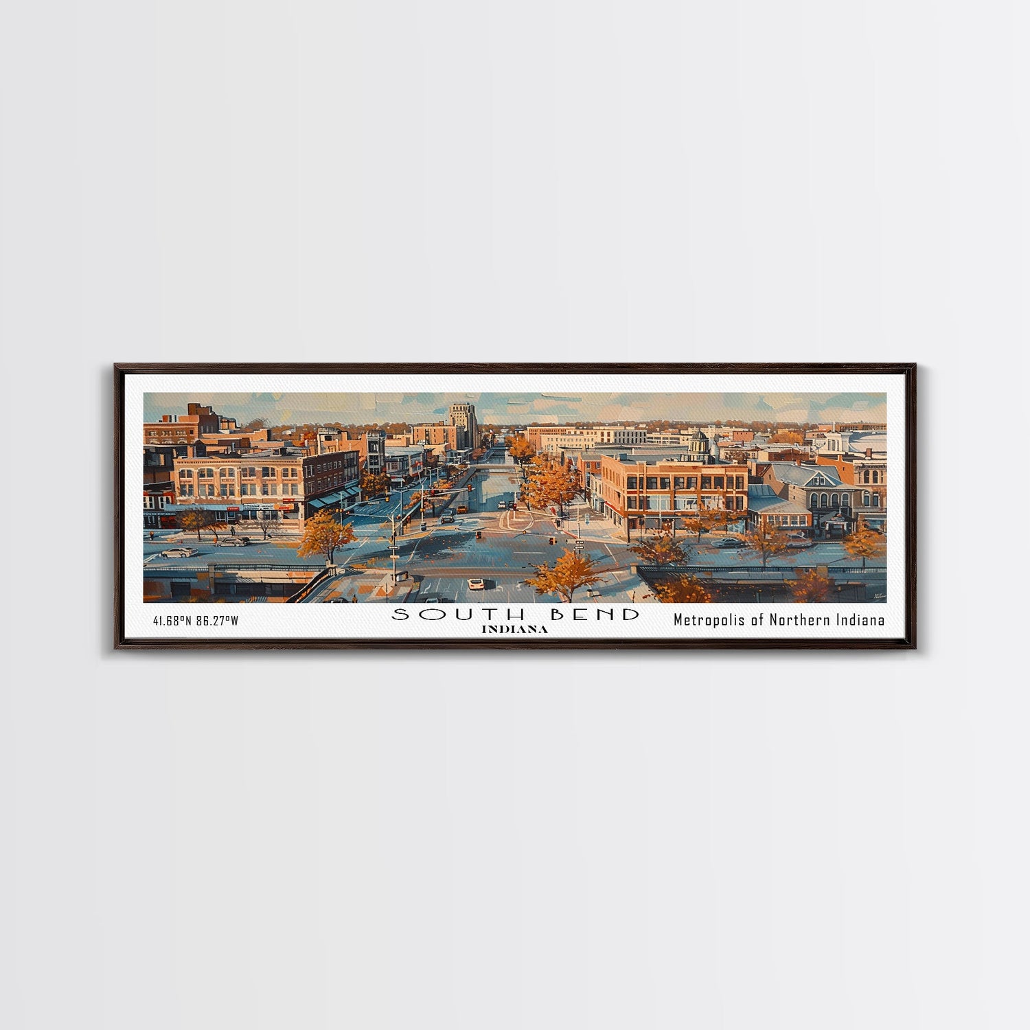 South Bend Indiana Travel Poster, Framed Canvas Print, Wall Art, Home Decor, Travel Gift, Living Room Art, Retro Style Art, Office Decor