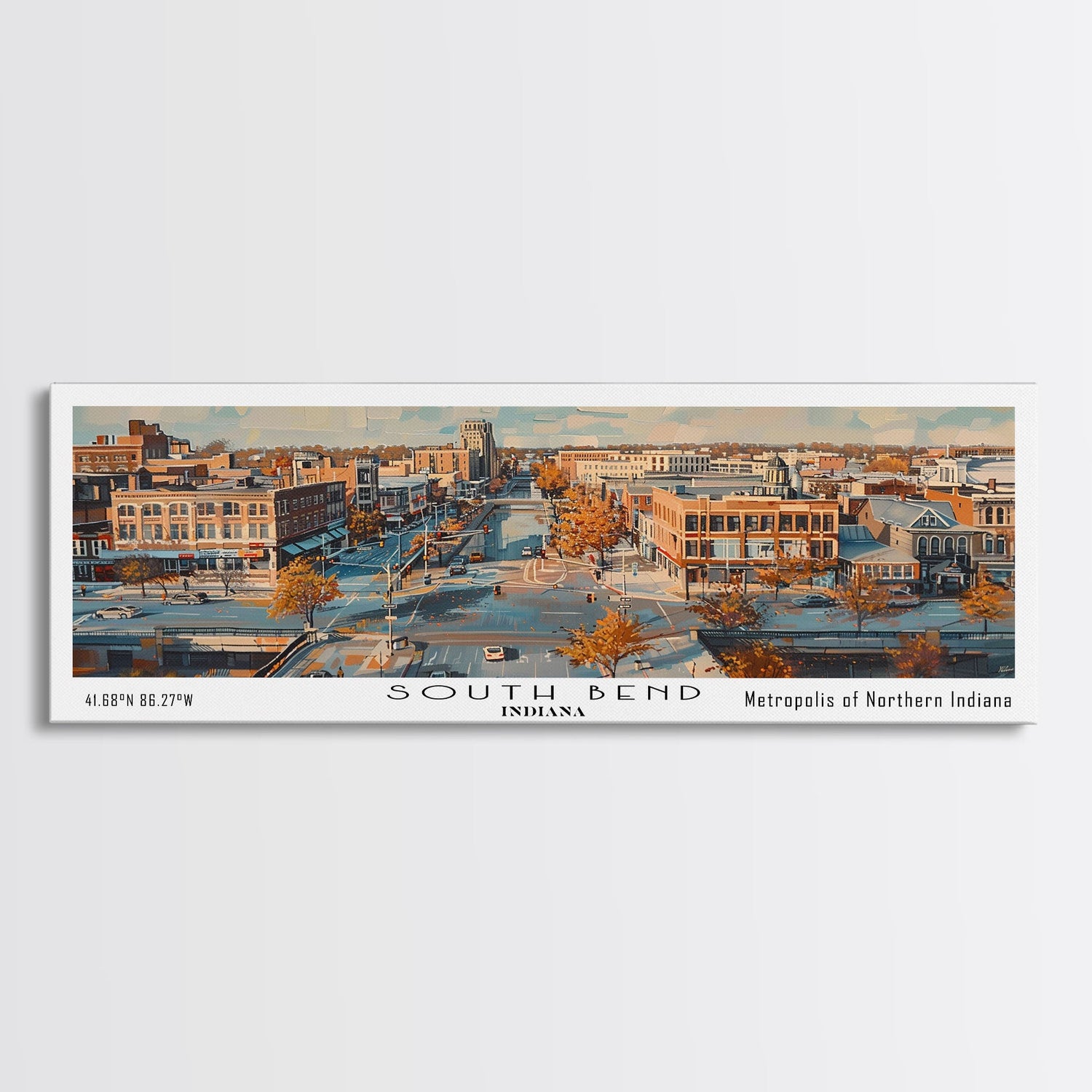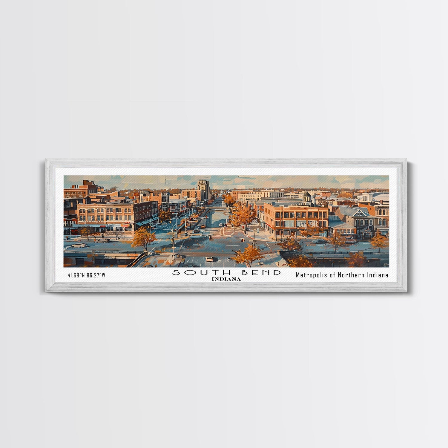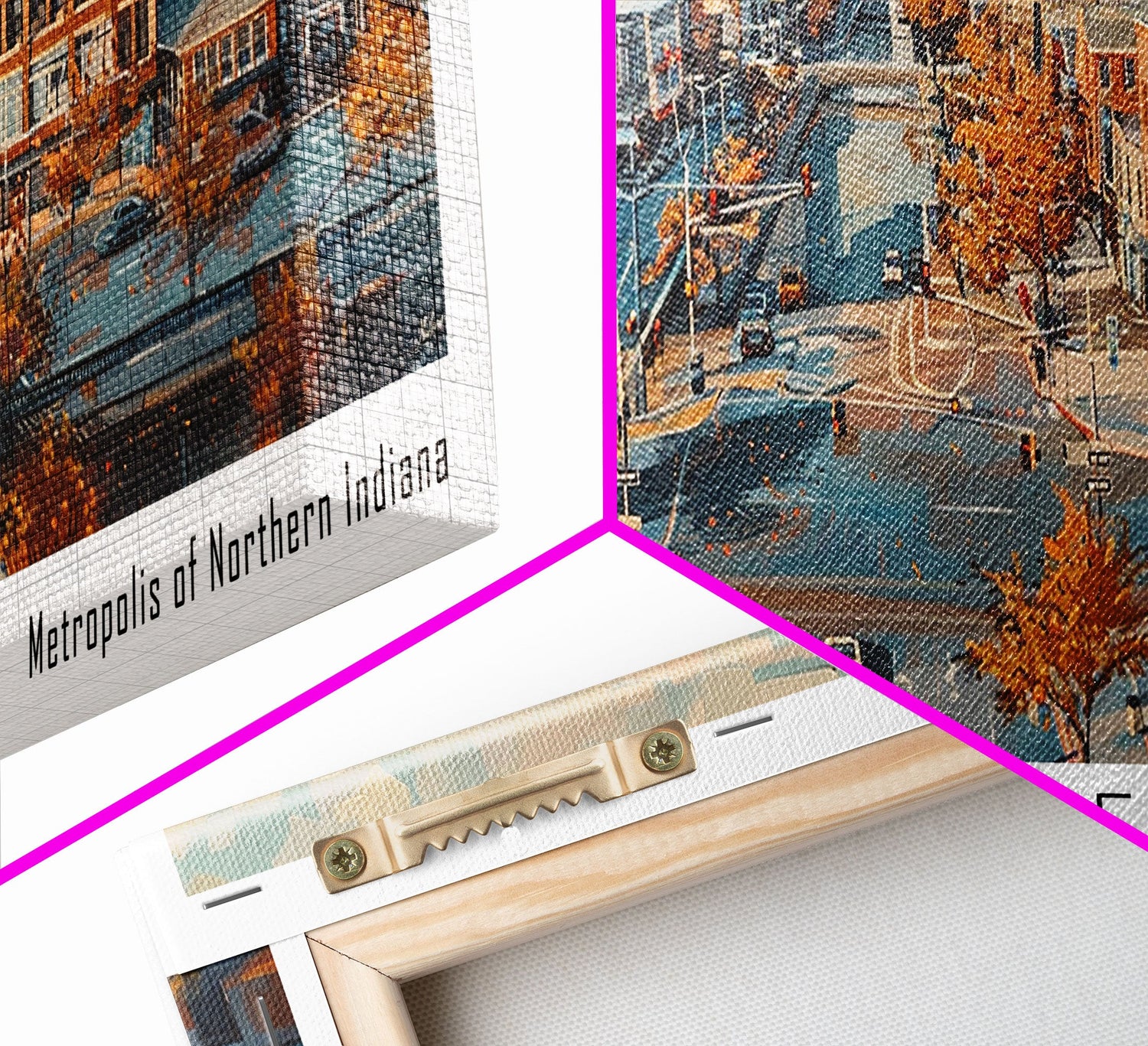 South Bend Indiana Travel Poster, Framed Canvas Print, Wall Art, Home Decor, Travel Gift, Living Room Art, Retro Style Art, Office Decor