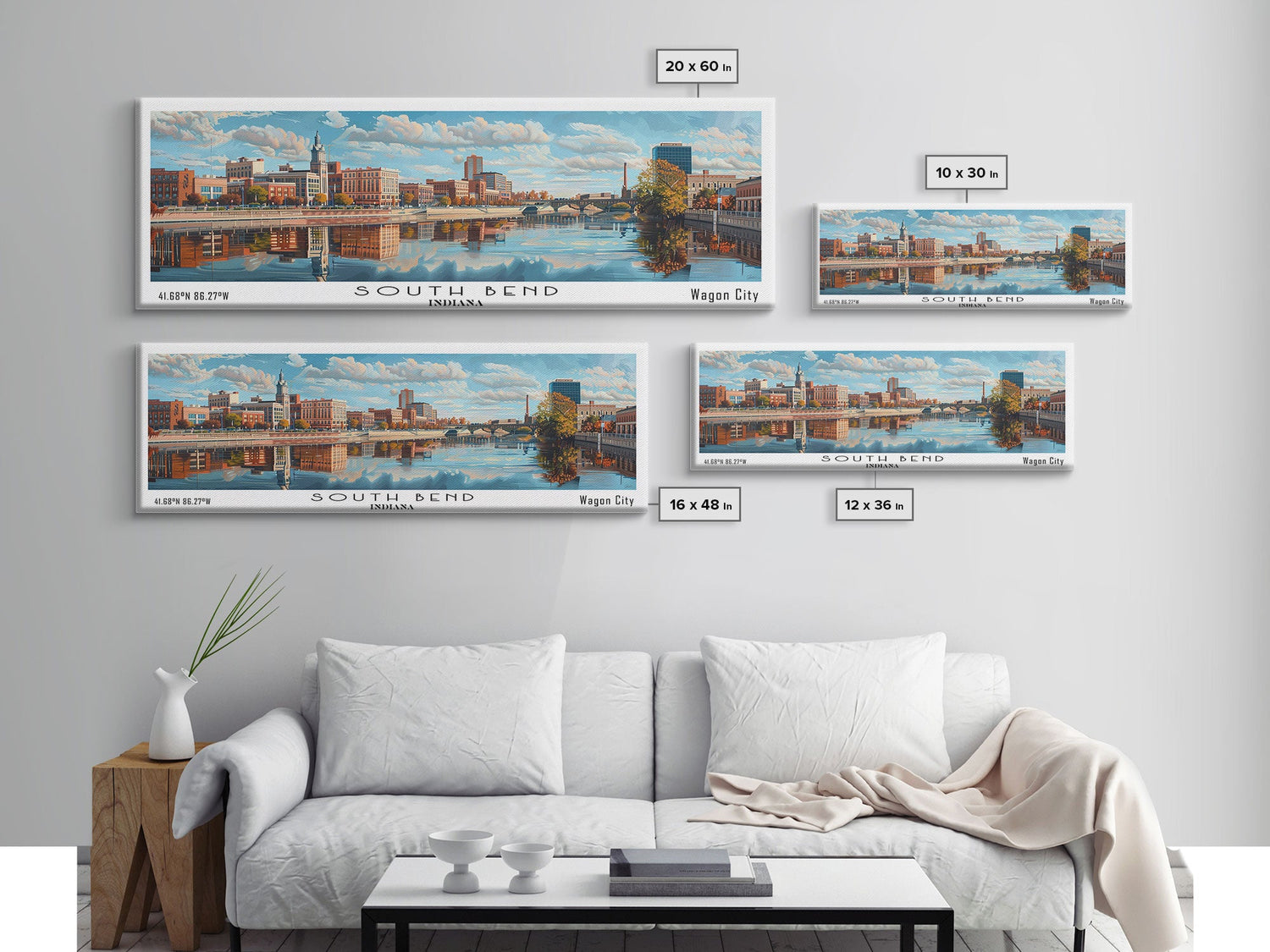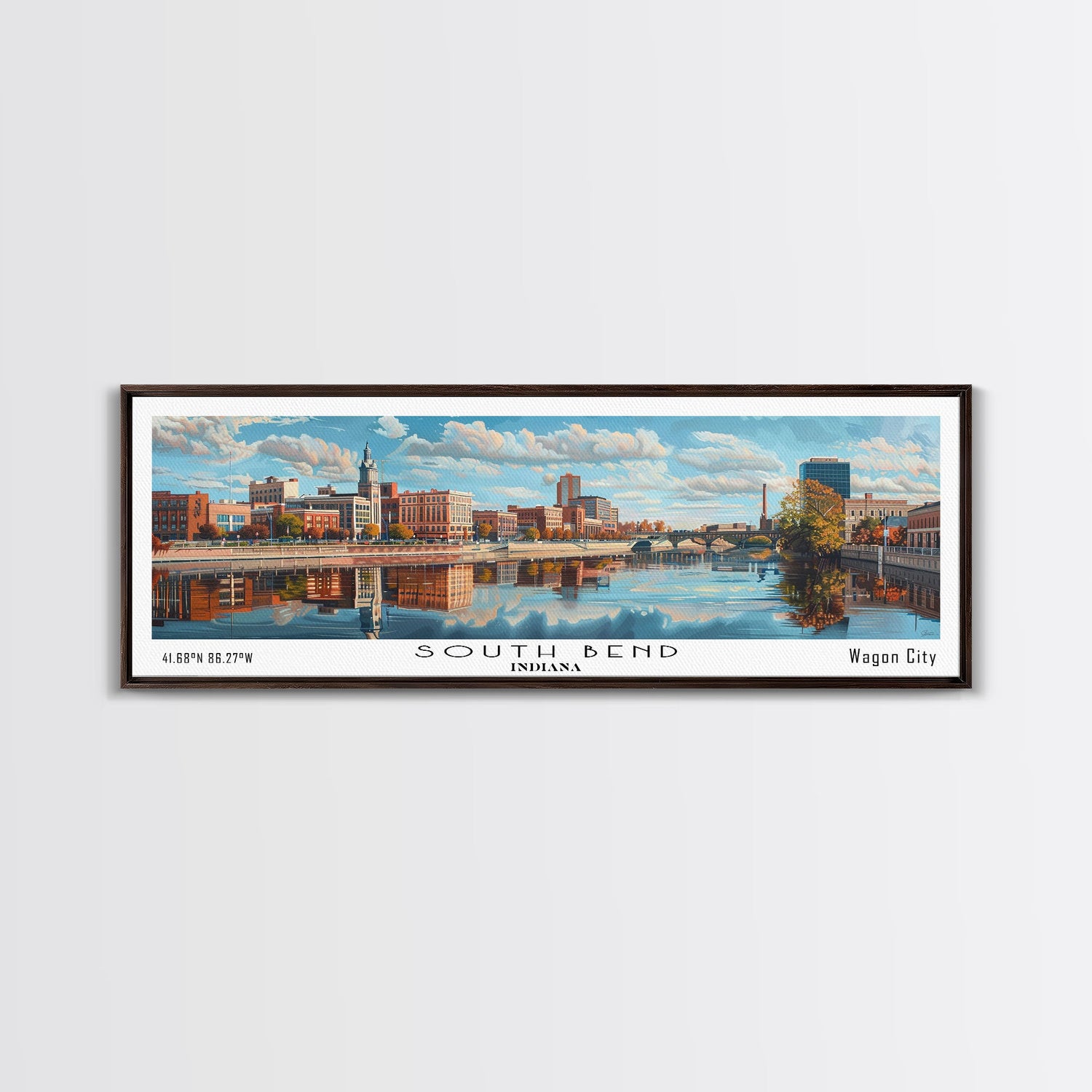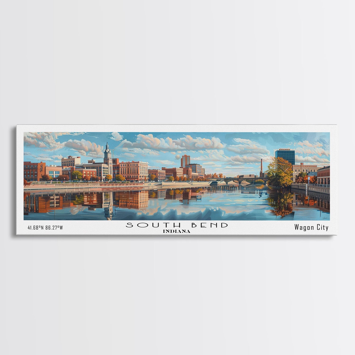 South Bend Indiana Travel Poster, Framed Canvas Print, Wall Art, Home Decor, Travel Print, Office Decor, Living Room Art, Gift Idea