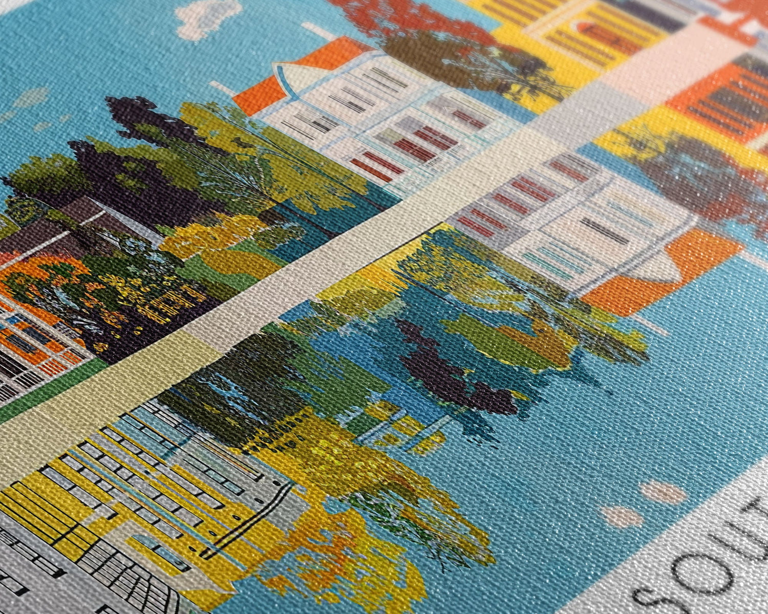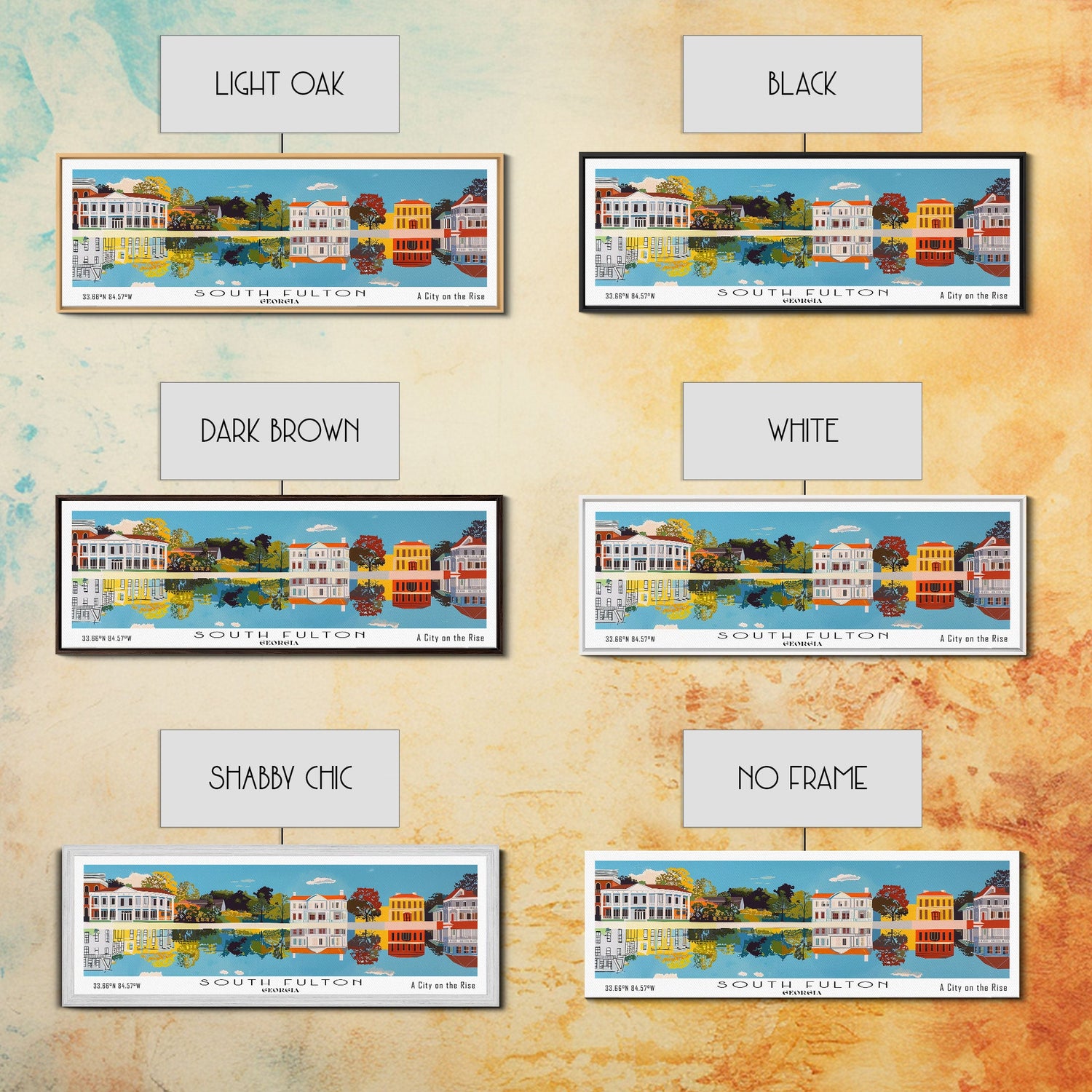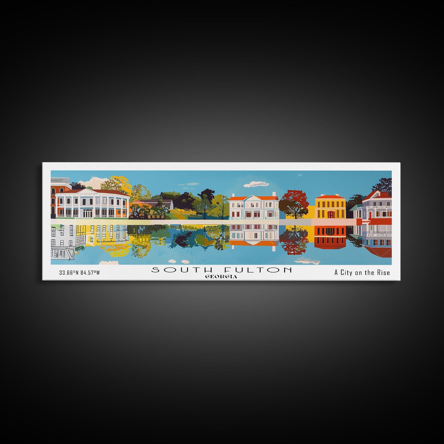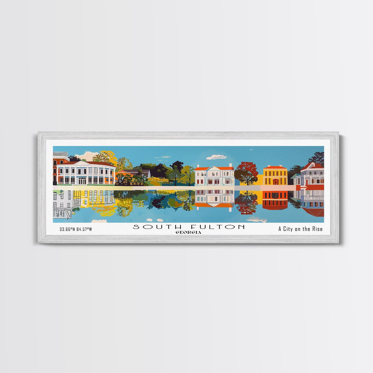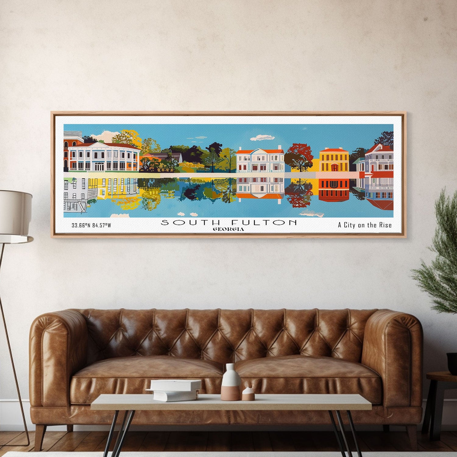 South Fulton Georgia Panoramic Wall Art, Mid Century Modern Framed Canvas Print, Retro Pop Art Travel Poster, Office Wall Decor and Gift Idea