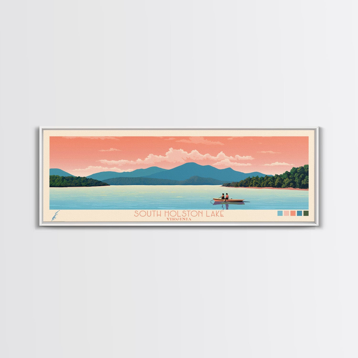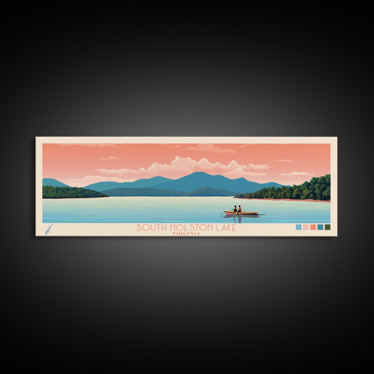 South Holston Lake, Virginia Framed Canvas Print, Lake House Art, Midcentury Modern Decor, Pop Art, Travel Poster, Living Room Wall Art