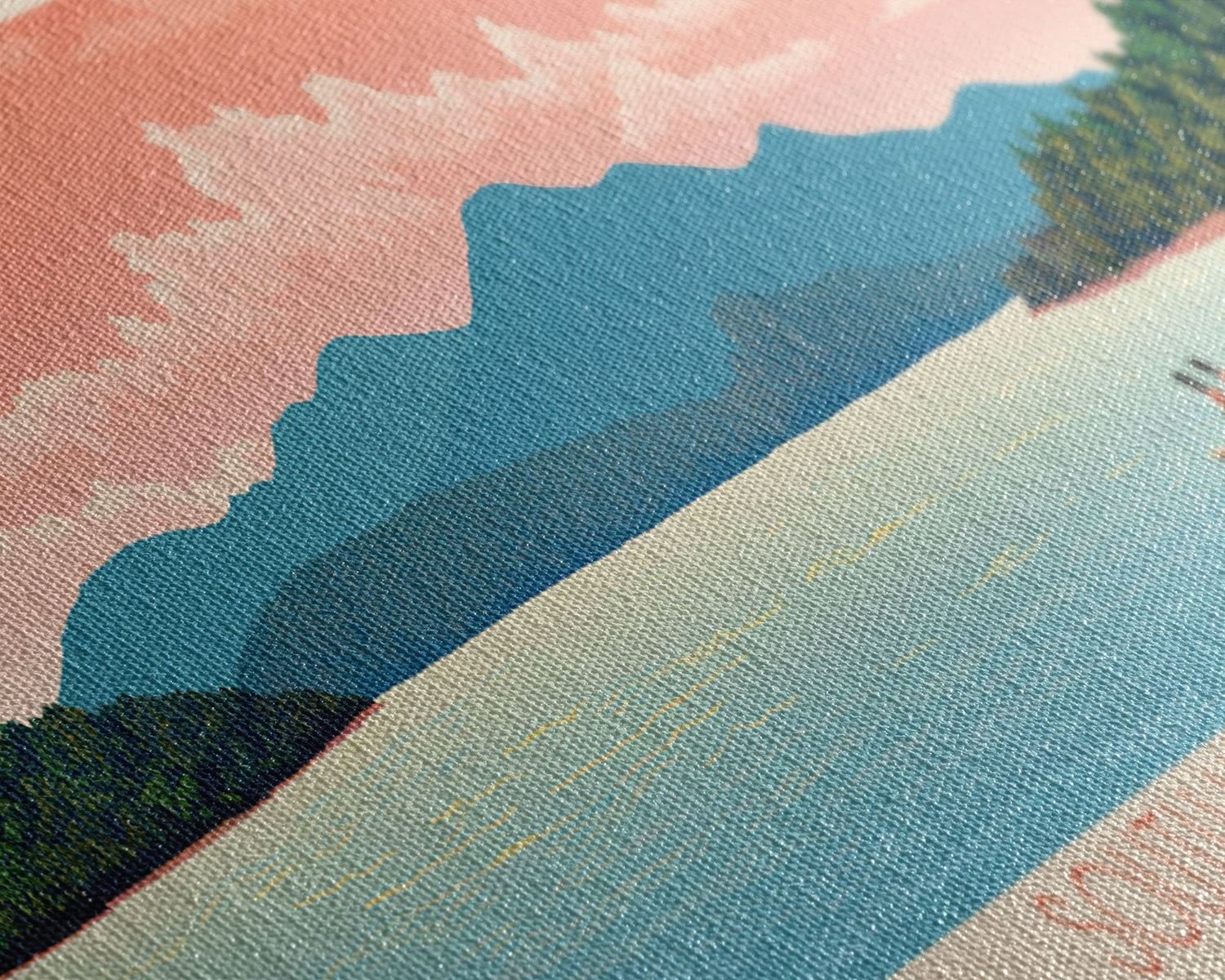 Most of our canvases are made in the USA, with the exception of canvases ordered with the light oak unstained frames, and any large canvases (24x48, 30x60, 16x48 and 20x60) ordered WITH a frame. These are temporarily made in and shipped from Europe, while we try to find a more consistent supplier in the USA.