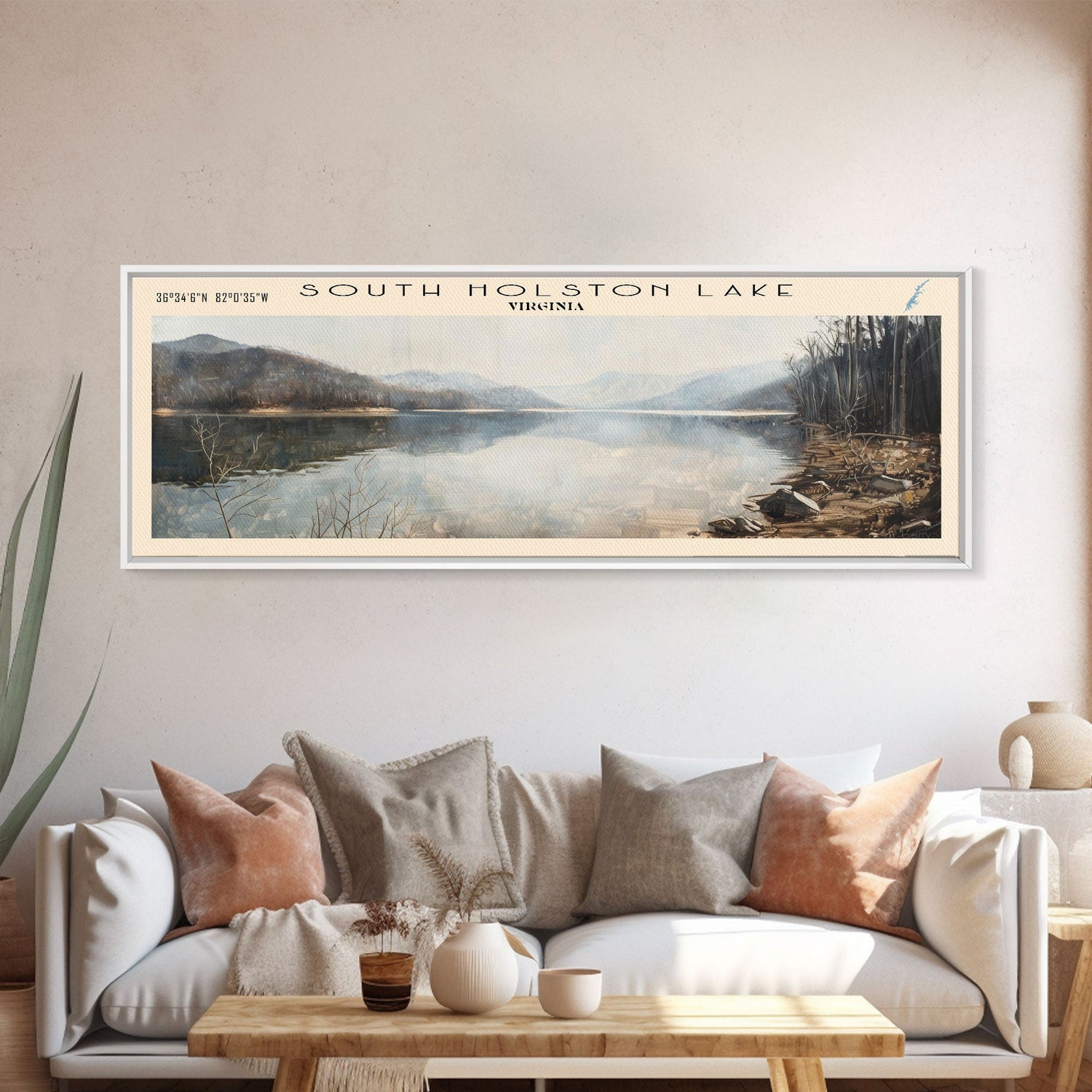 South Holston Lake Virginia Panoramic Framed Canvas Print, Lake House Decor, Wall Art, Travel Poster, Beautiful Lake Scene, Bedroom Decor