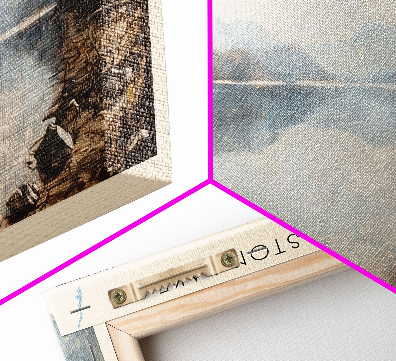 Most of our canvases are made in the USA, with the exception of canvases ordered with the light oak unstained frames, and any large canvases (24x48, 30x60, 16x48 and 20x60) ordered WITH a frame. These are temporarily made in and shipped from Europe, while we try to find a more consistent supplier in the USA.