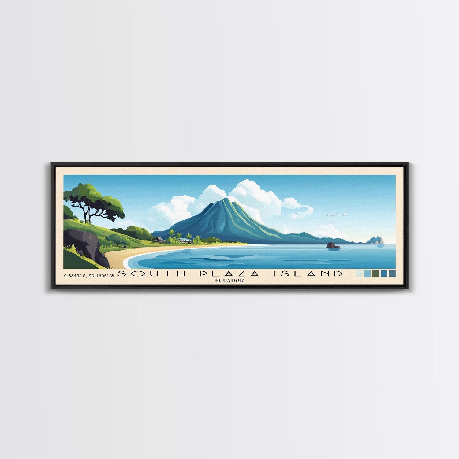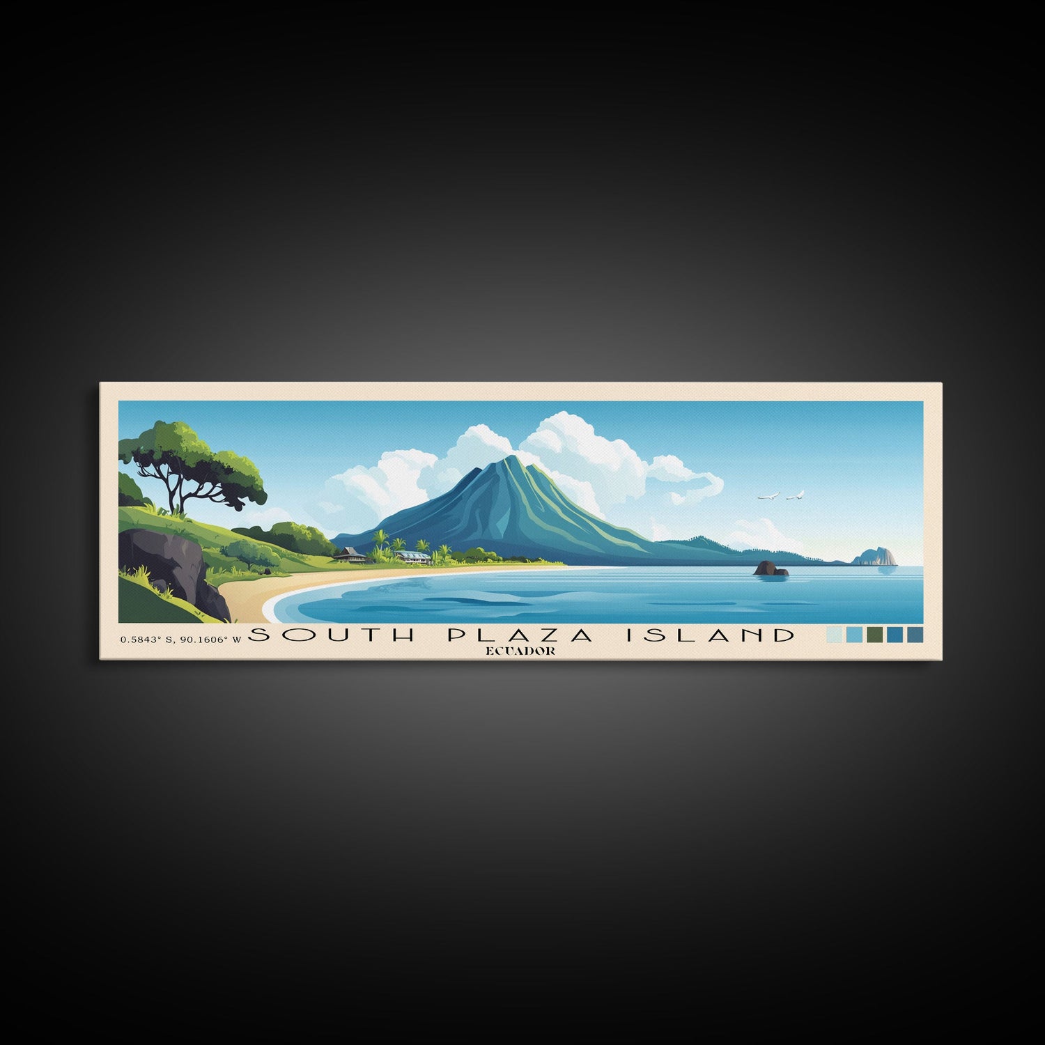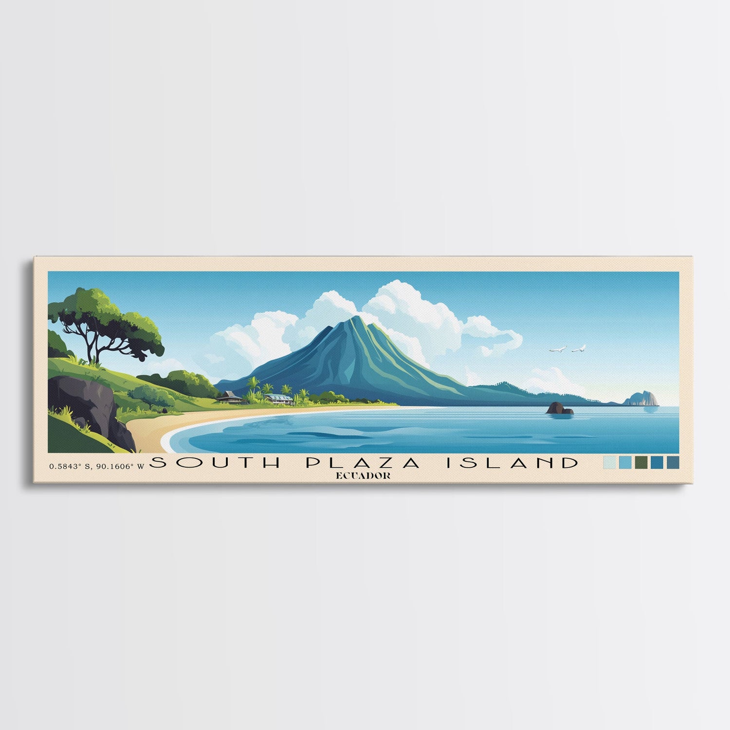 South Plaza Island, Ecuador Panoramic Beach Print, Vacation Gift, Ecuador Wall Art, Beach Painting, Beach Decor, Beach Painting