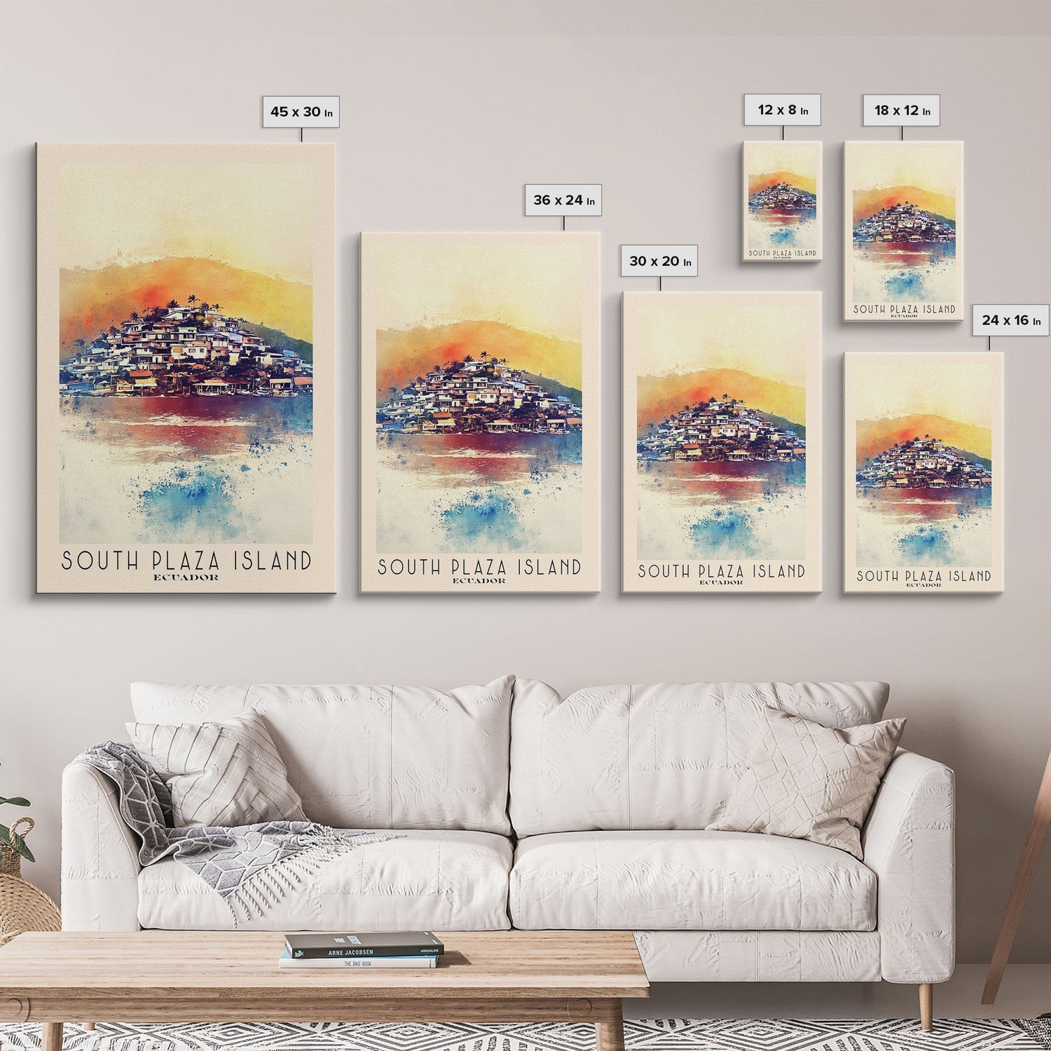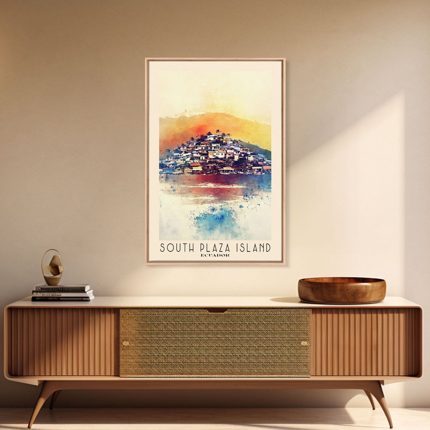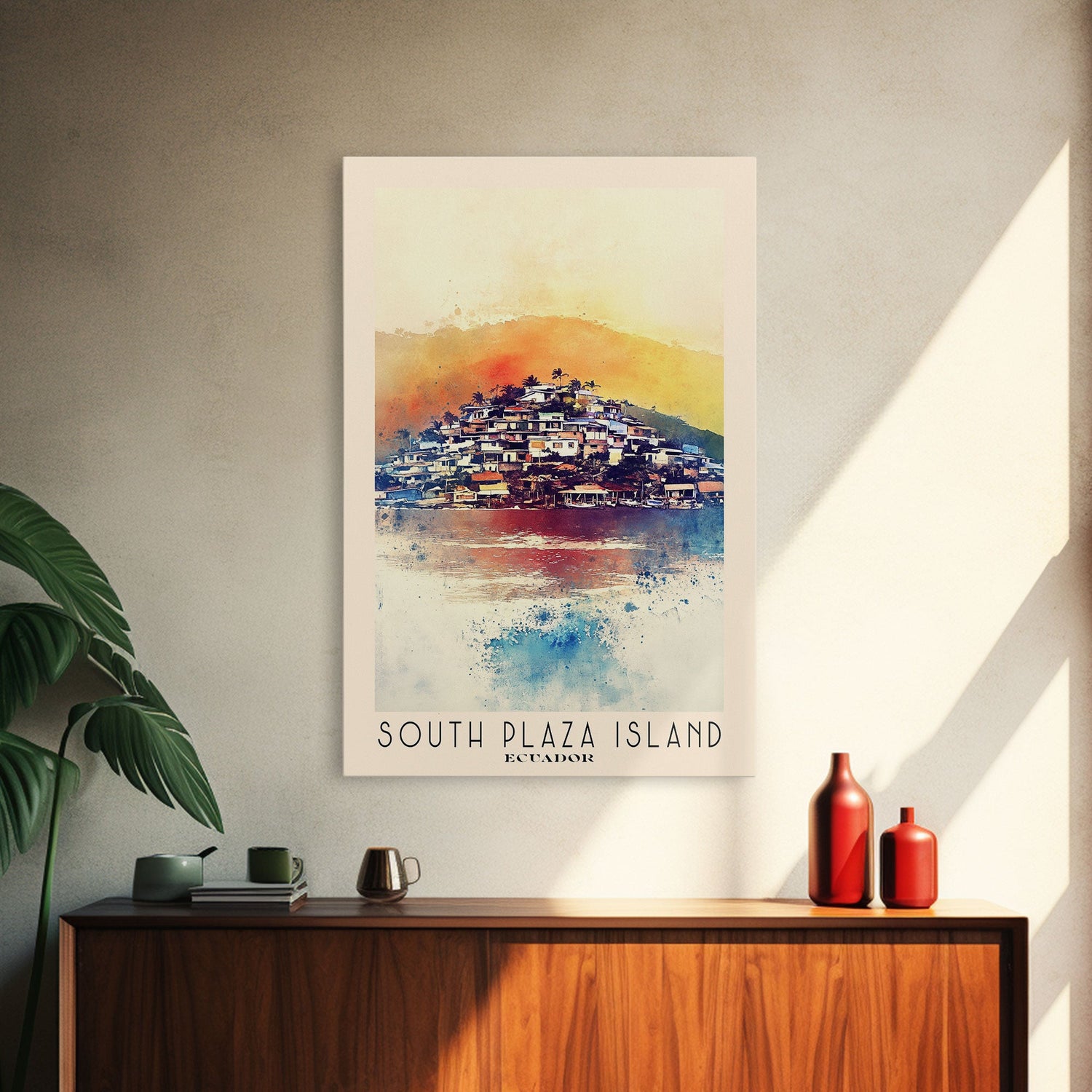 South Plaza Island, Ecuador Watercolor Beach Print, Vacation Gift, Ecuador Wall Art, Framed Canvas Print, Framed Beach Painting