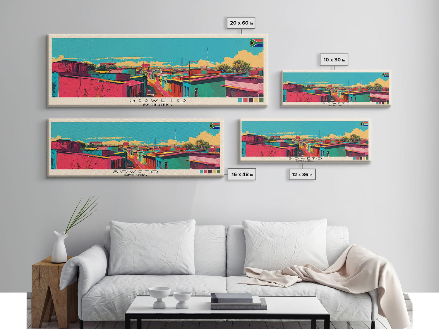 Soweto, South Africa Panoramic Canvas Print, Soweto, South Africa Painting, South Africa Art, Soweto Travel Poster, Travel Art, Vacation Gift