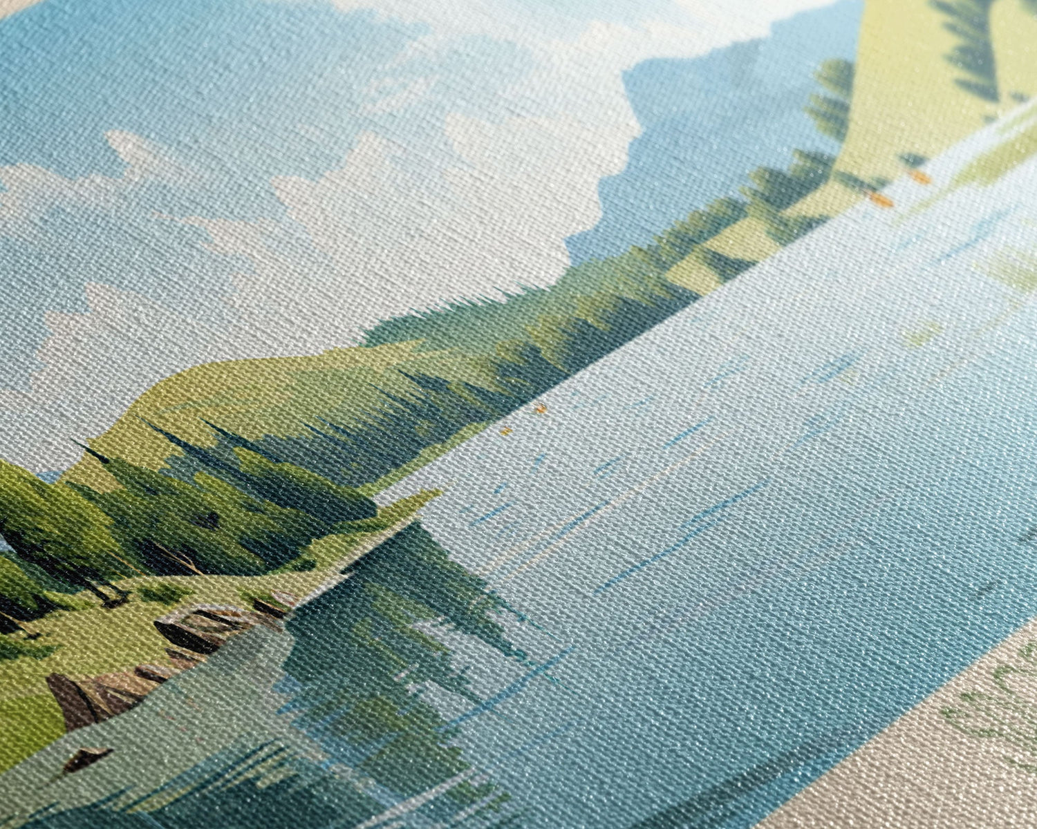 Spofford Lake, New Hampshire Framed Canvas Print, Lake House Art, Midcentury Modern Decor, Pop Art, Travel Poster, Living Room Wall Art