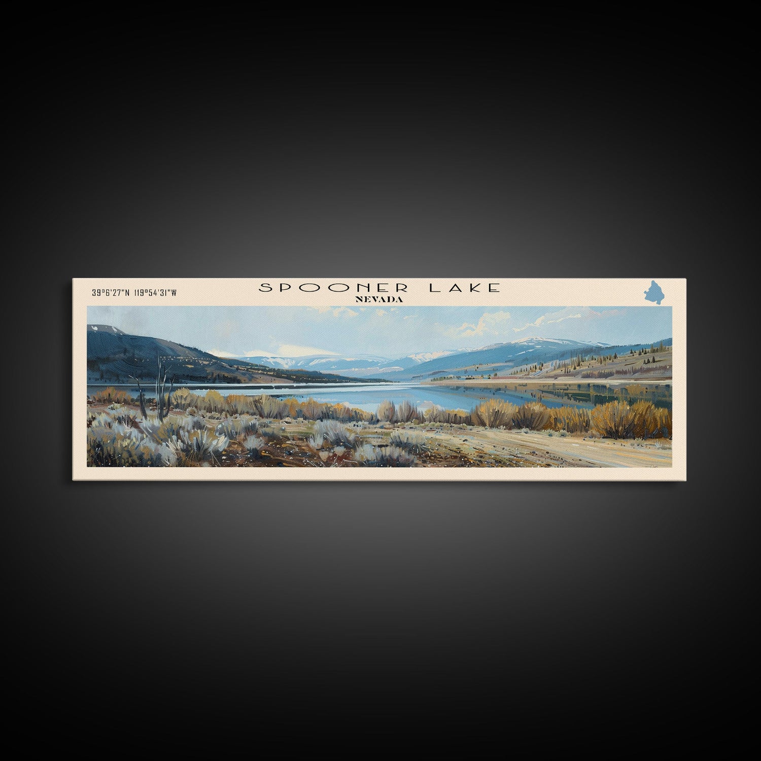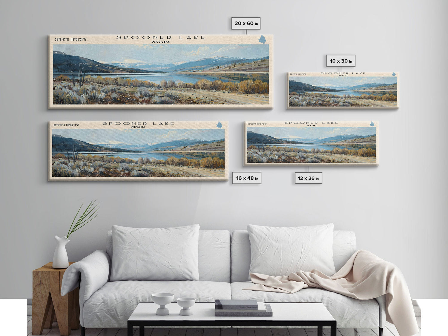 Spooner Lake Nevada Panoramic Framed Canvas Print, Lake House Decor, Wall Art, Travel Poster, Serene Lake Painting, Modern Art