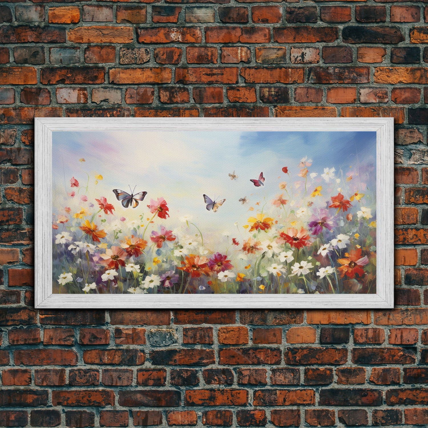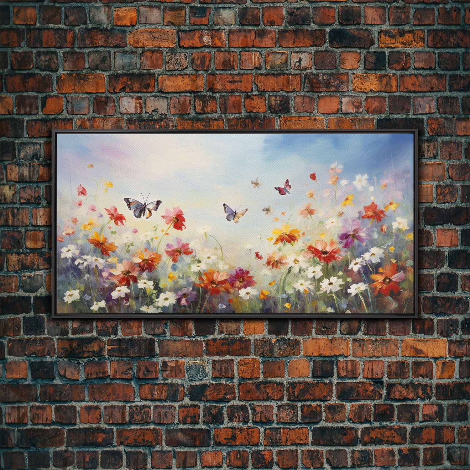 Spring Meadow Print, Butterflies Wall Art, Panoramic Art, Wall Art, Canvas Art, Landscape Art, Wildflower Meadow, Teacher Gift, Kitchen Art
