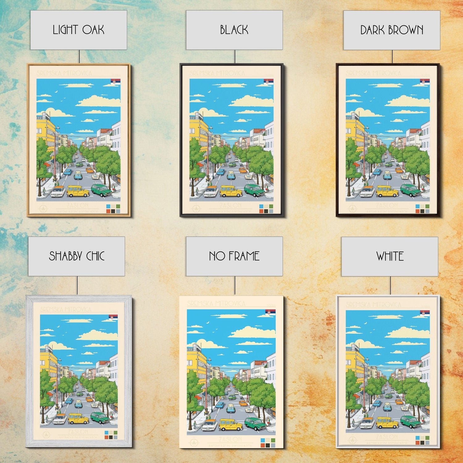 Sremska Mitrovica Serbia Travel Poster Framed Canvas Print, Midcentury Modern Art, Pop Art Wall Decor, Living Room Art, Home Decoration