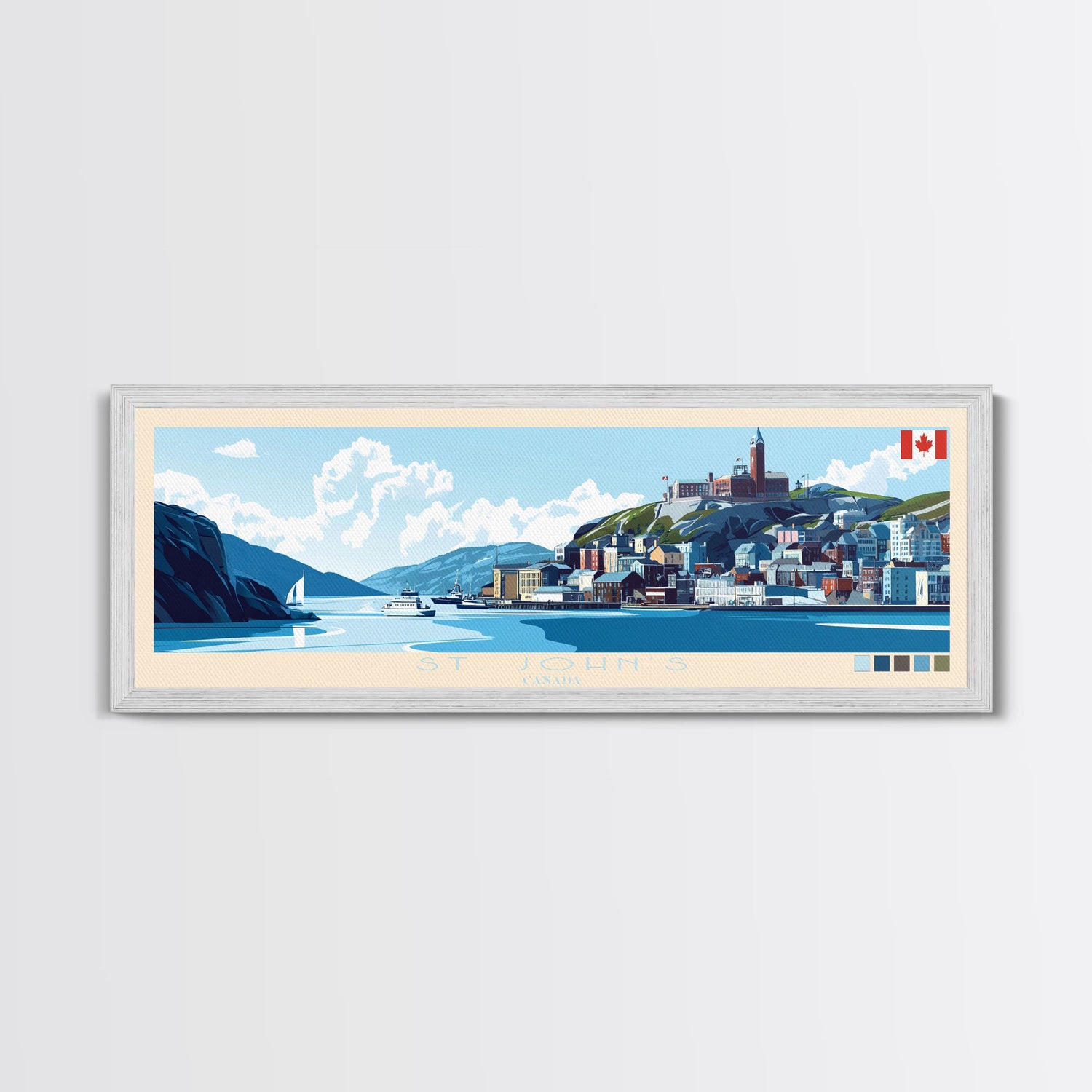 St. John's, Canada Travel Poster Panoramic Canvas Print, St. John's, Canada Painting, Canada Art, St. John's Travel Art, Guest Room Painting