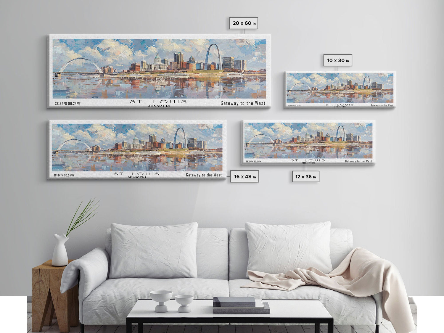St. Louis Missouri Travel Poster, Framed Canvas Print, Wall Art, Home Decor, Travel Gift, Living Room Art, Retro Style Art, Office Decor - 10x30 Inches / No Frame - Stretched Canvas Only está agotado y se enviará tan pronto como vuelva a estar disponible.