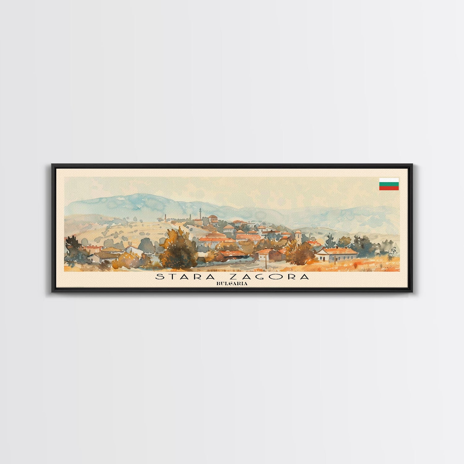 Stara Zagora Bulgaria Wall Art, Panoramic Travel Poster, Panoramic Framed Canvas Print, City Wall Art, Wall Hanging Home Decor, Travel Art