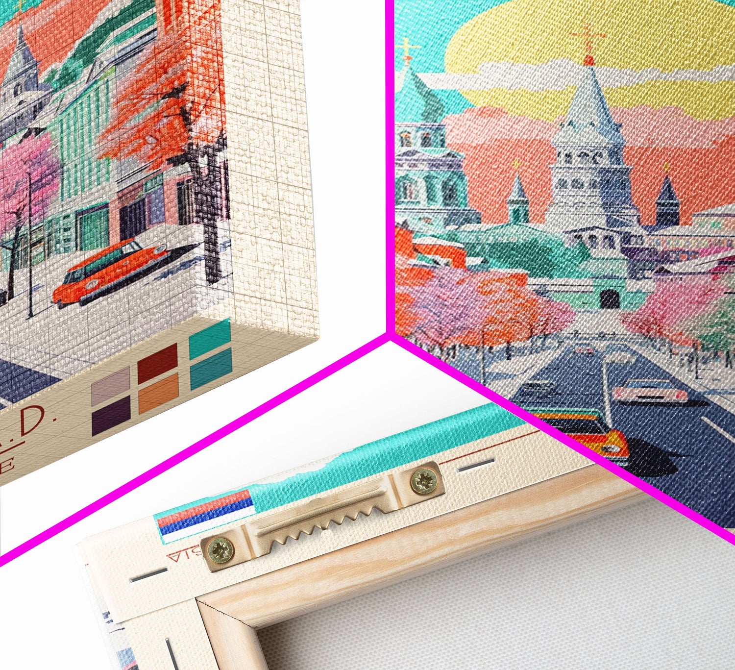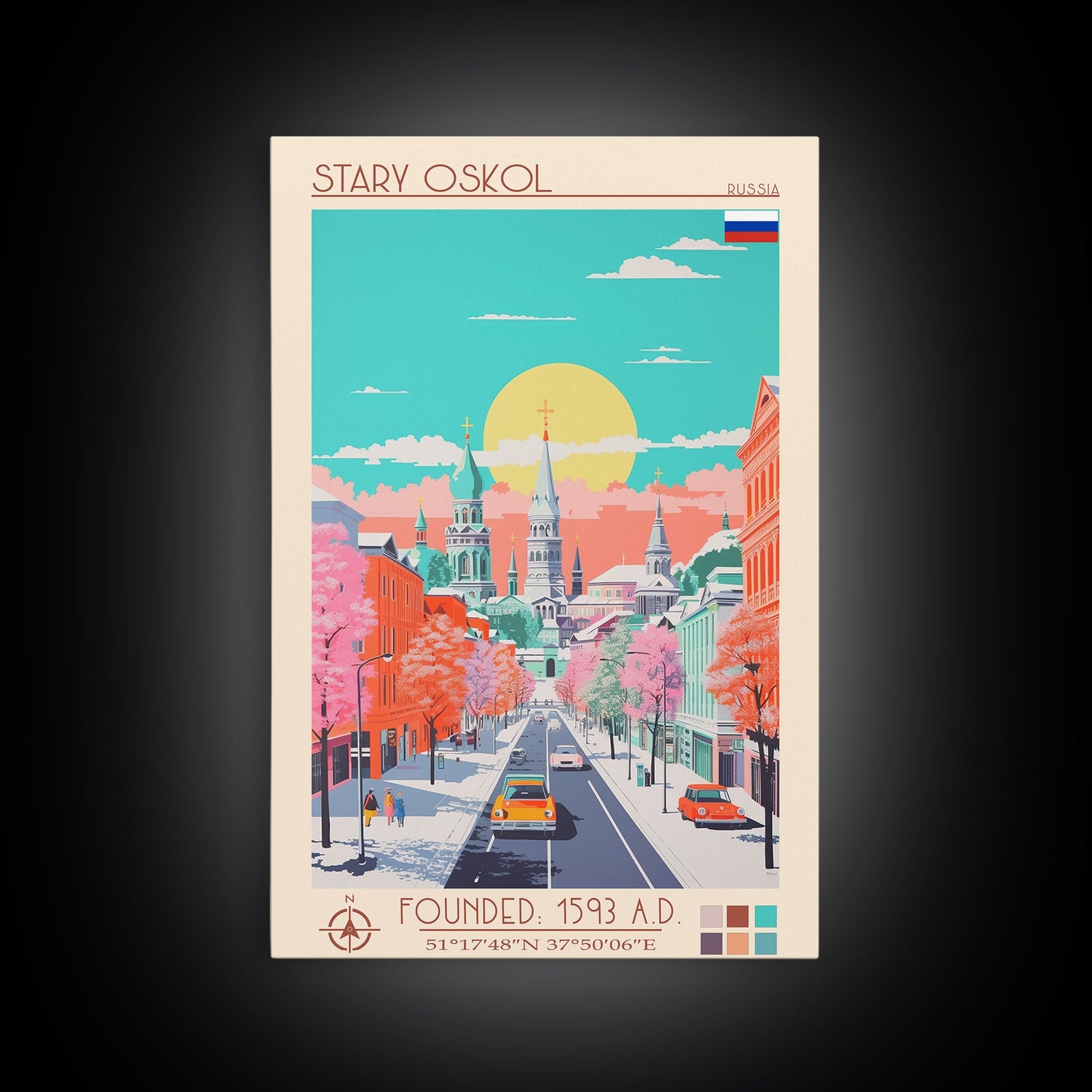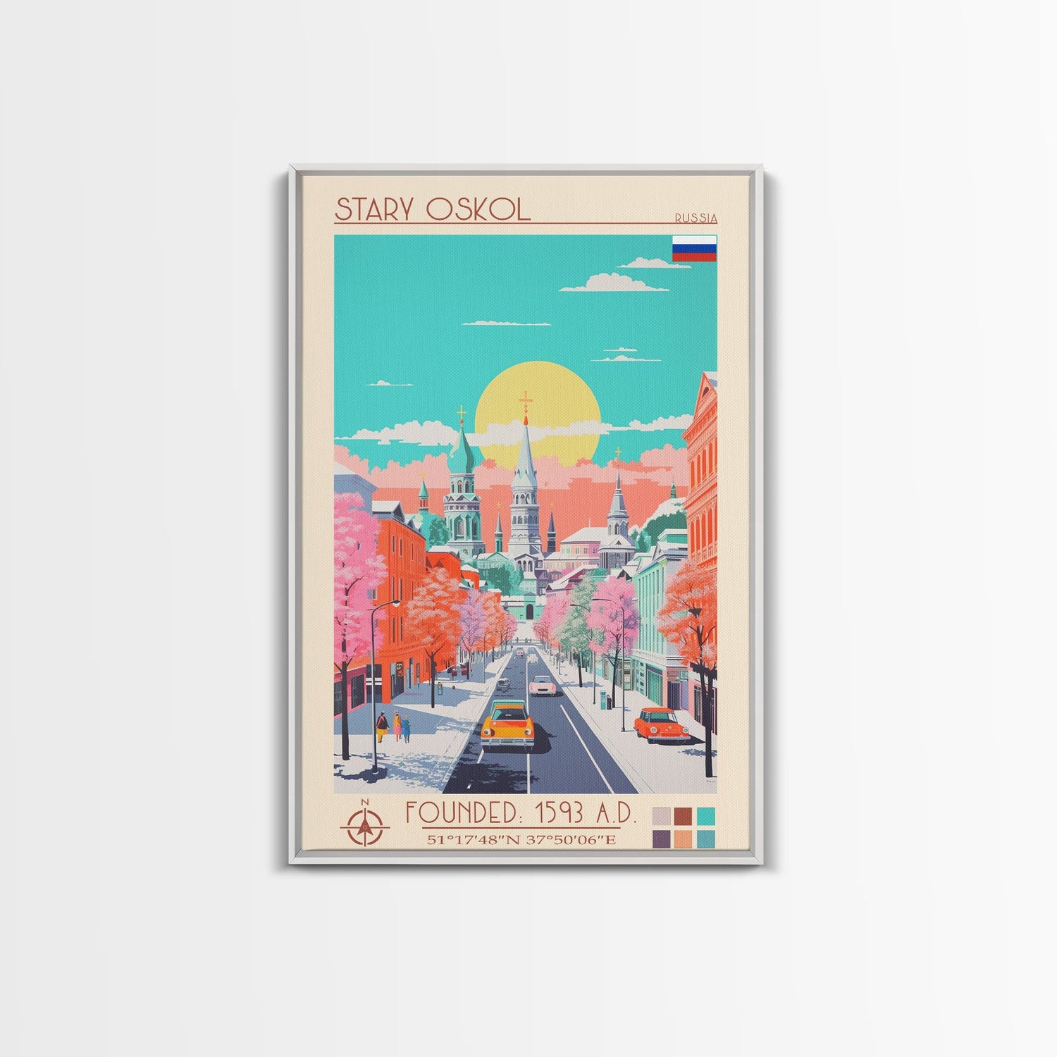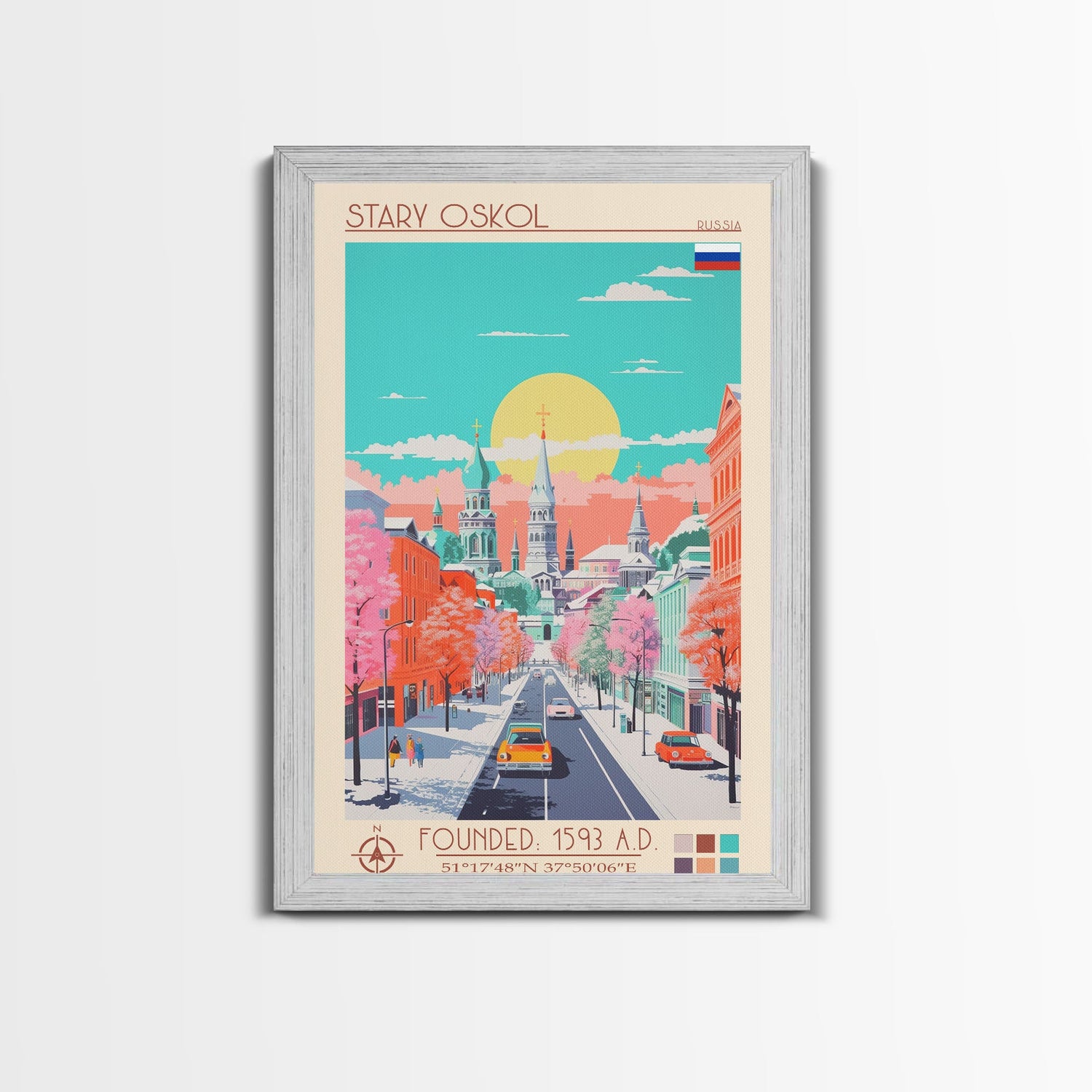 Stary Oskol Russia Travel Poster Framed Canvas Print, Midcentury Modern Art, Pop Art Wall Decor, Living Room Art, Scenic Wall Art