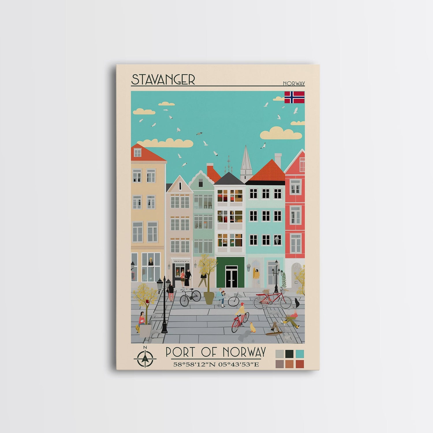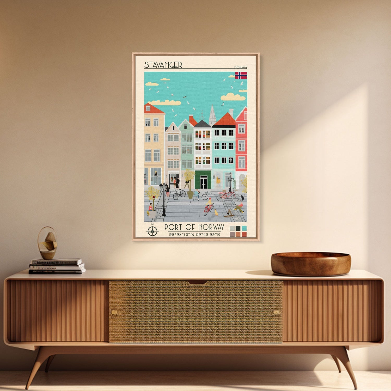 Stavanger Norway Travel Poster Framed Canvas Print, Midcentury Modern Art, Pop Art Wall Decor, Living Room Art, Home Decoration