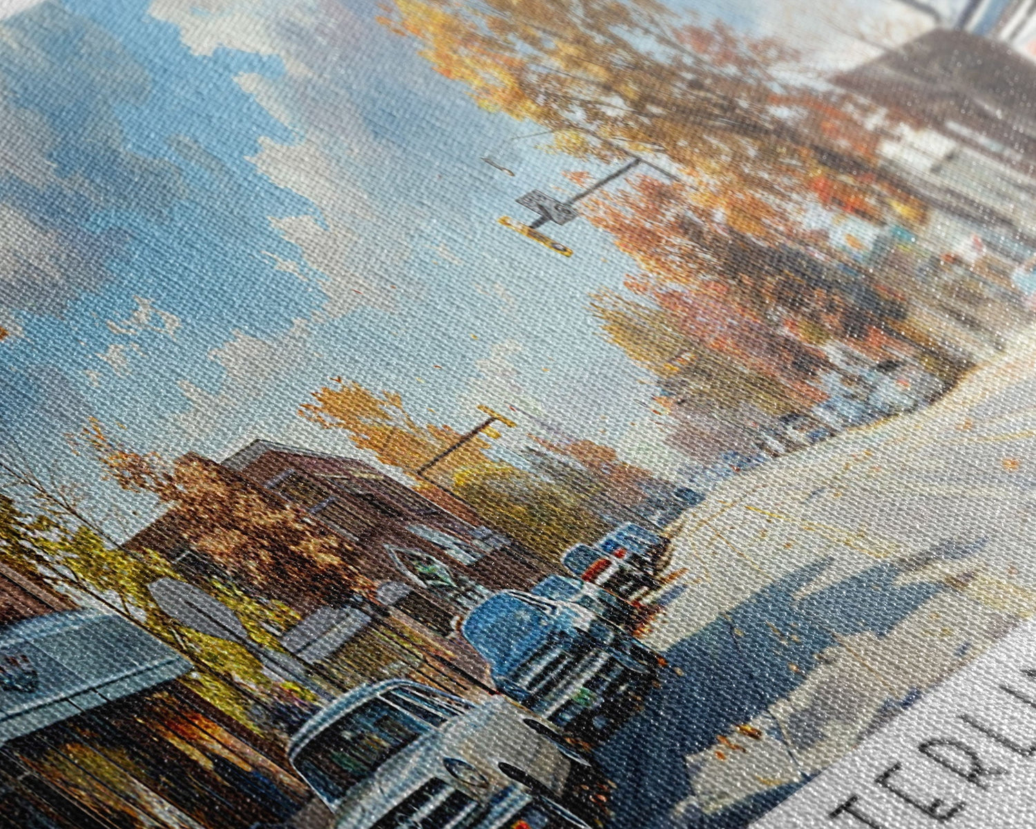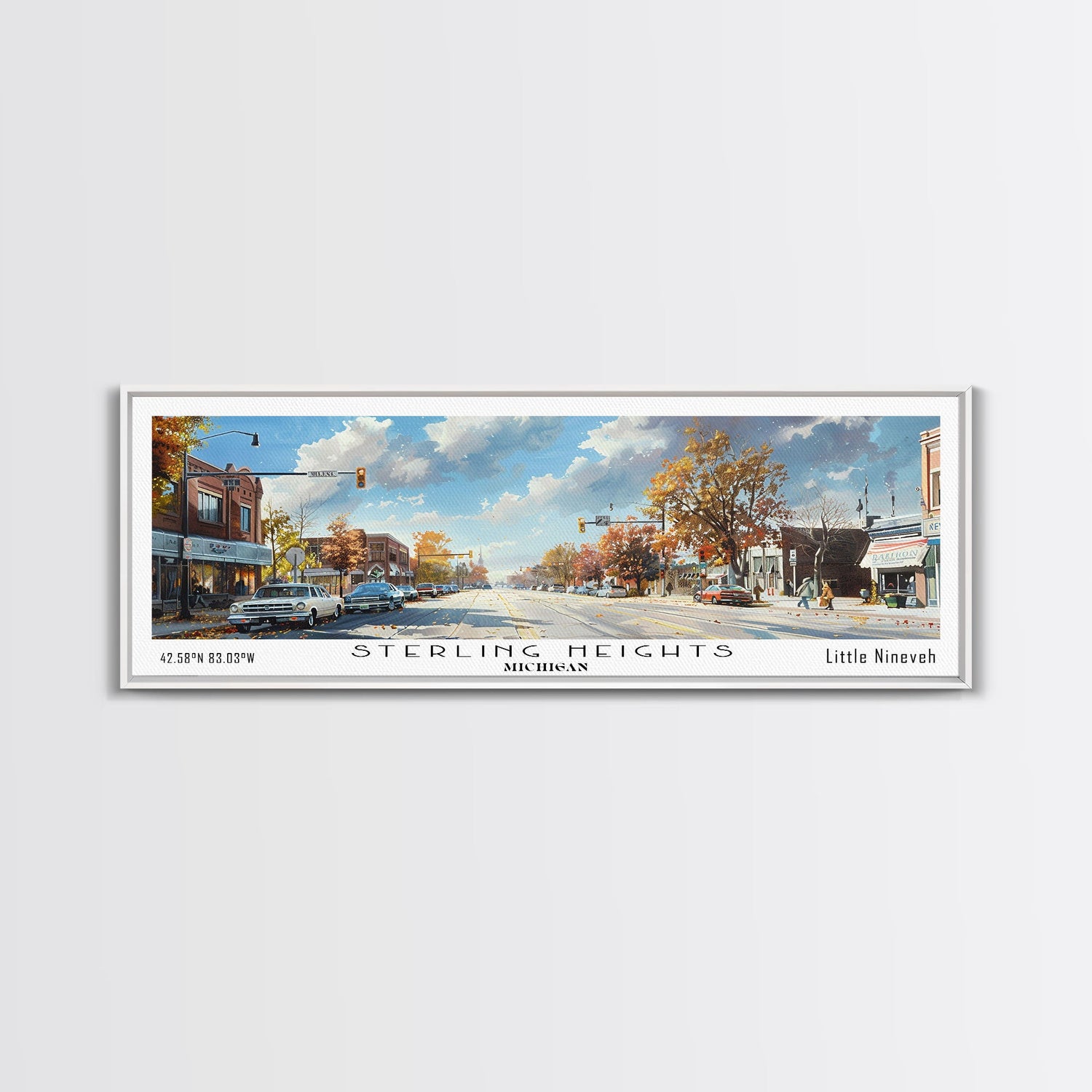 Sterling Heights Michigan Travel Poster, Framed Canvas Print, Office Art, Wall Hanging, Travel Gift, Living Room Art, Vintage Style