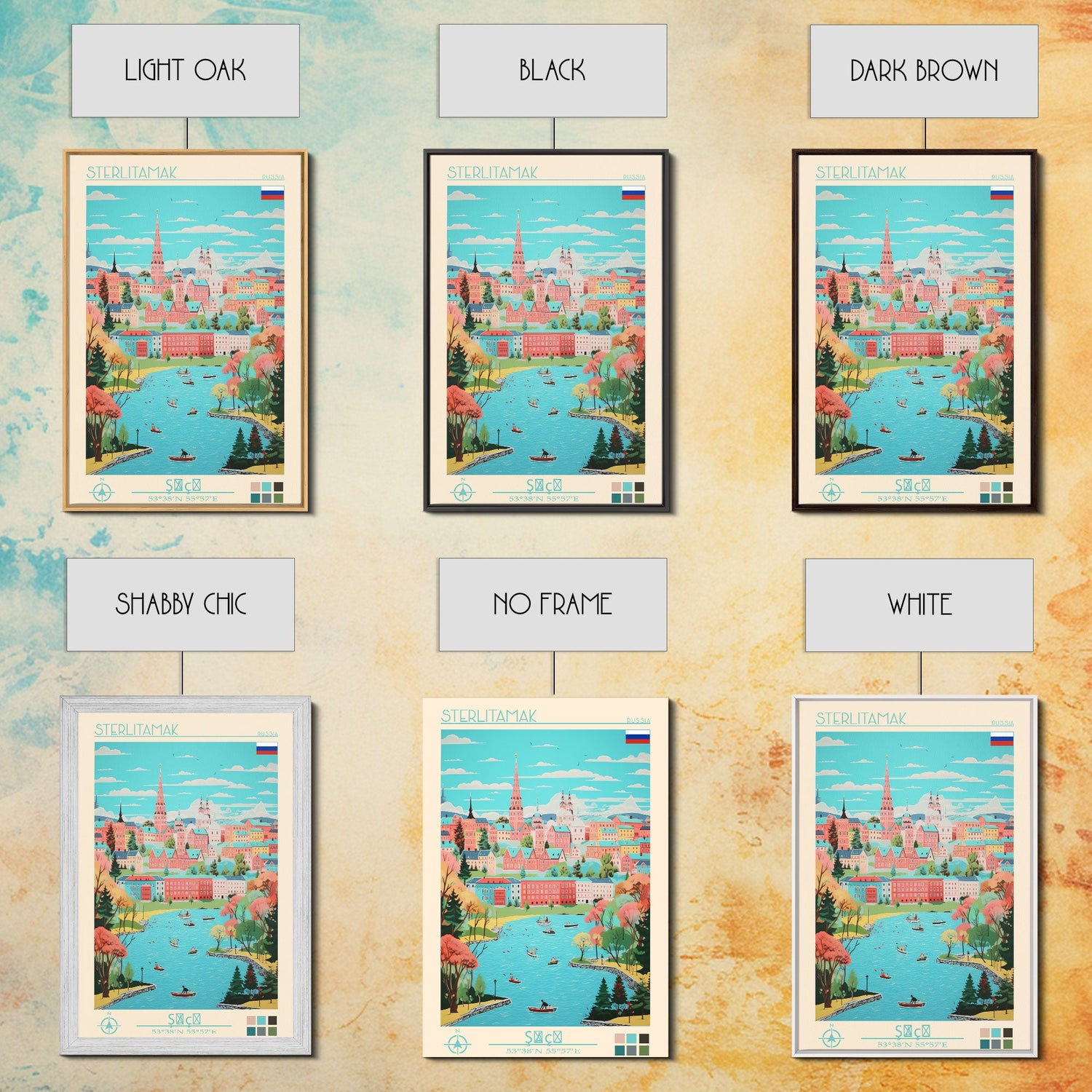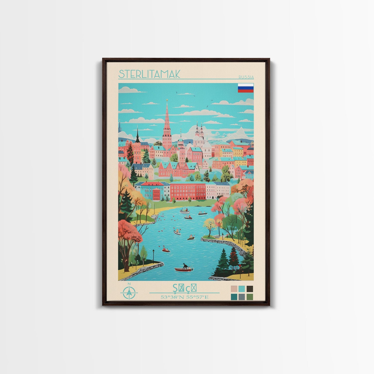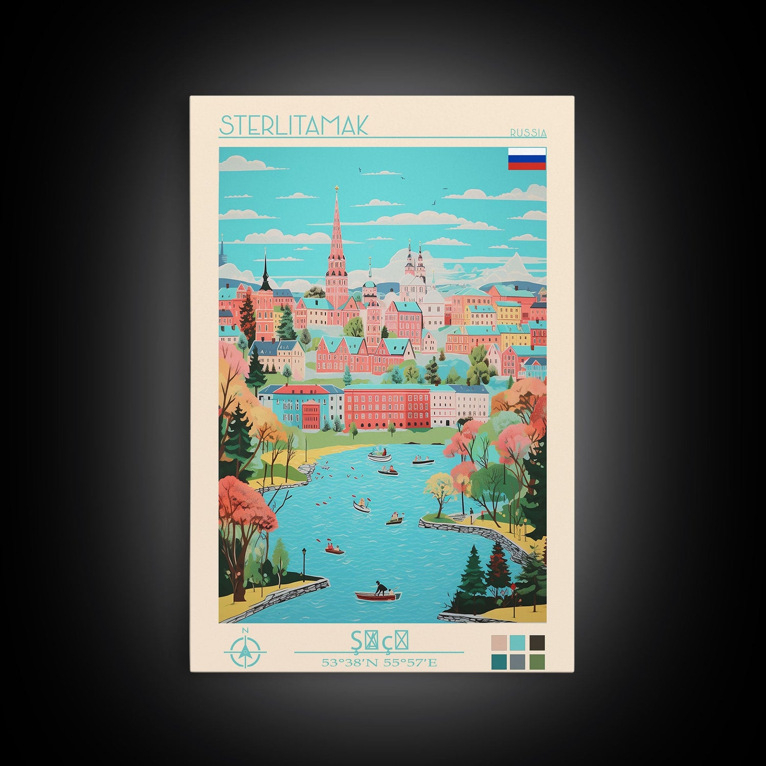 Sterlitamak Russia Travel Poster Framed Canvas Print, Midcentury Modern Art, Pop Art Wall Decor, Living Room Art, Home Decoration