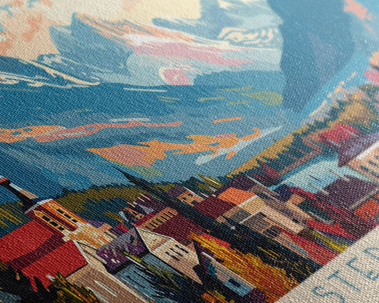 Most of our canvases are made in the USA, with the exception of canvases ordered with the light oak unstained frames, and any large canvases (24x48, 30x60, 16x48 and 20x60) ordered WITH a frame. These are temporarily made in and shipped from Europe, while we try to find a more consistent supplier in the USA.