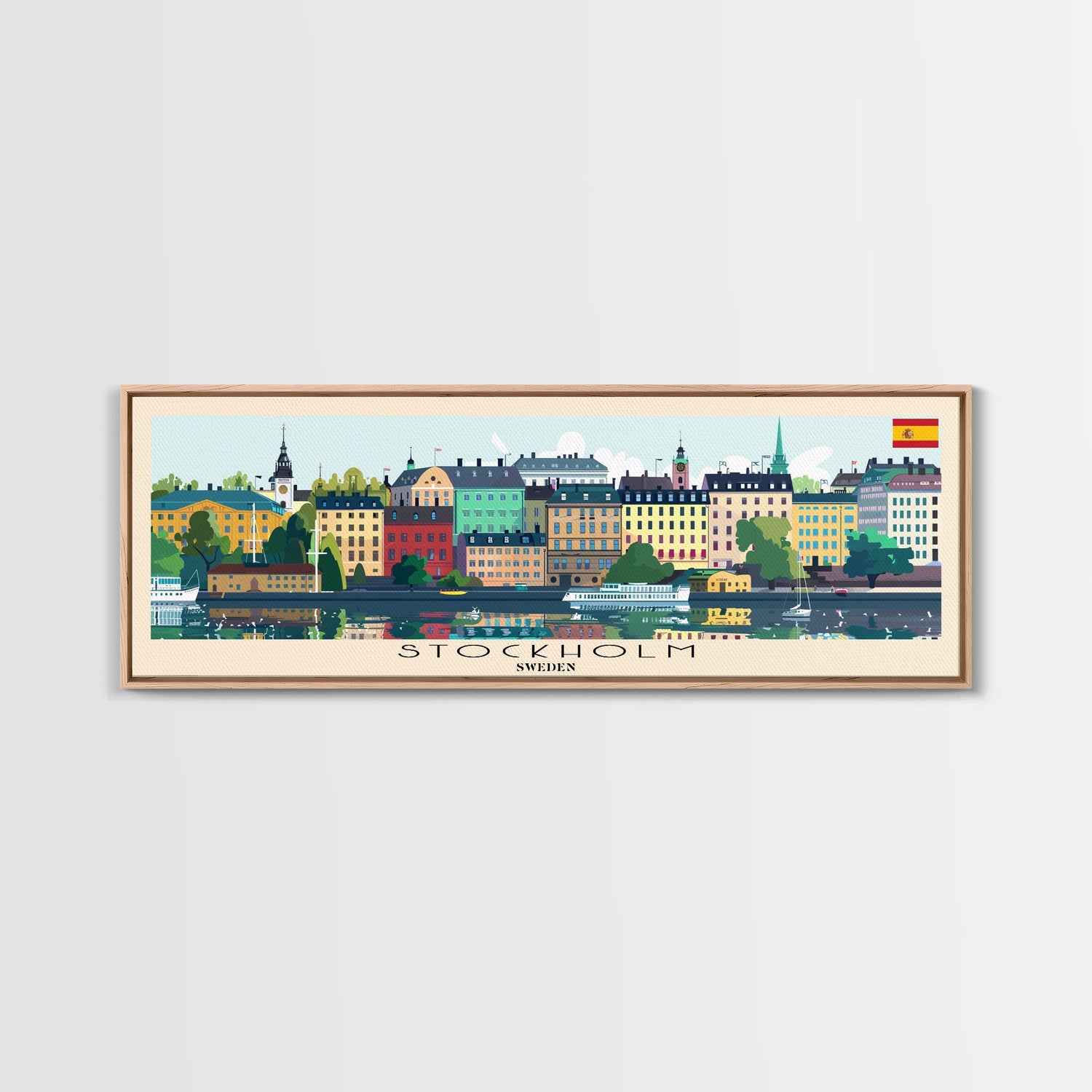 Stockholm Sweden Travel Art, City Art, Framed Canvas Print or Metal Wall Art, Europe Travel Poster, Panoramic Wall Art, Extra Wide Wall Art