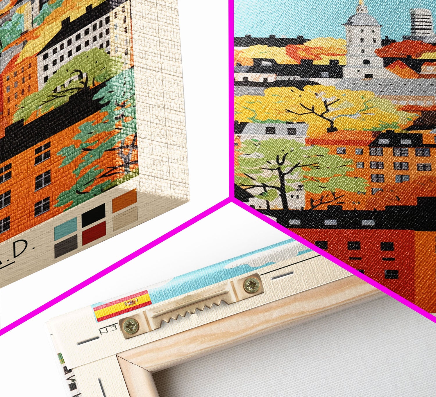 Stockholm Sweden Travel Poster Framed Canvas Print, Midcentury Modern Art, Pop Art Wall Decor, Living Room Art, Scenic Wall Art