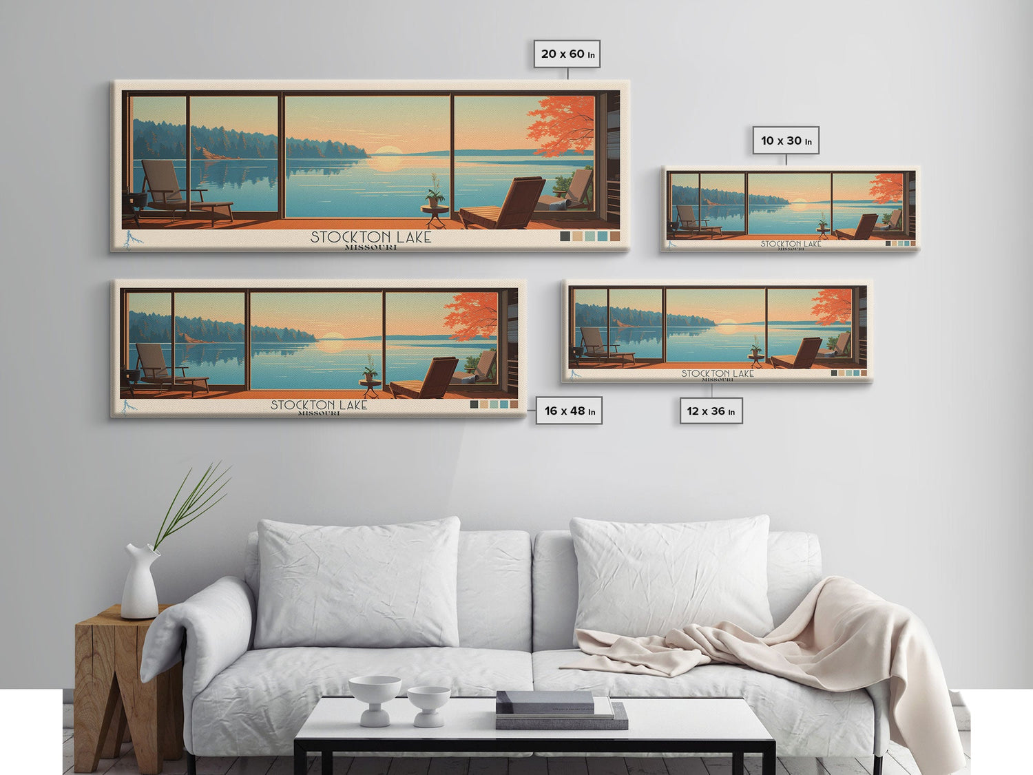 Stockton Lake, Missouri Framed Canvas Print, Lake House Art, Midcentury Modern Decor, Pop Art, Travel Poster, Living Room Wall Art - 10x30 Inches / No Frame - Stretched Canvas Only está agotado y se enviará tan pronto como vuelva a estar disponible.