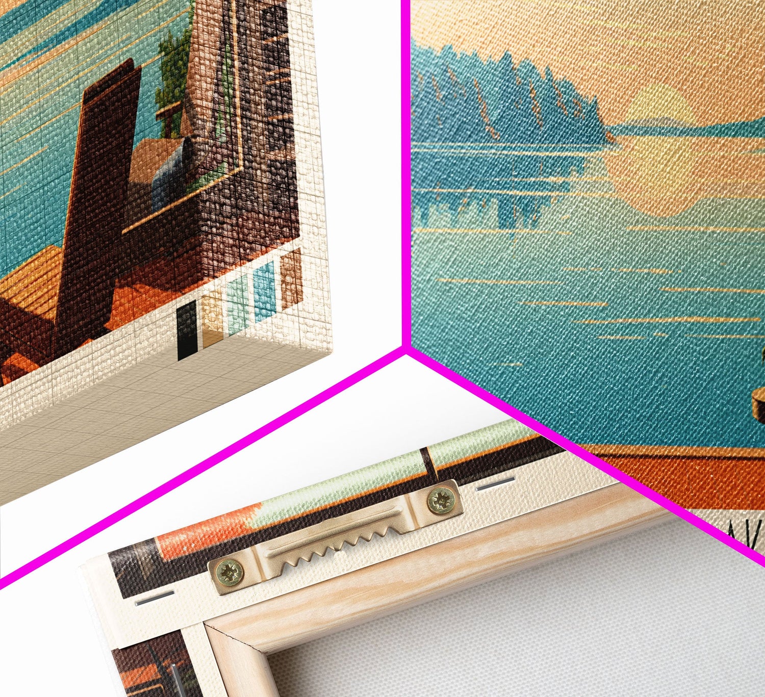 Stockton Lake, Missouri Framed Canvas Print, Lake House Art, Midcentury Modern Decor, Pop Art, Travel Poster, Living Room Wall Art