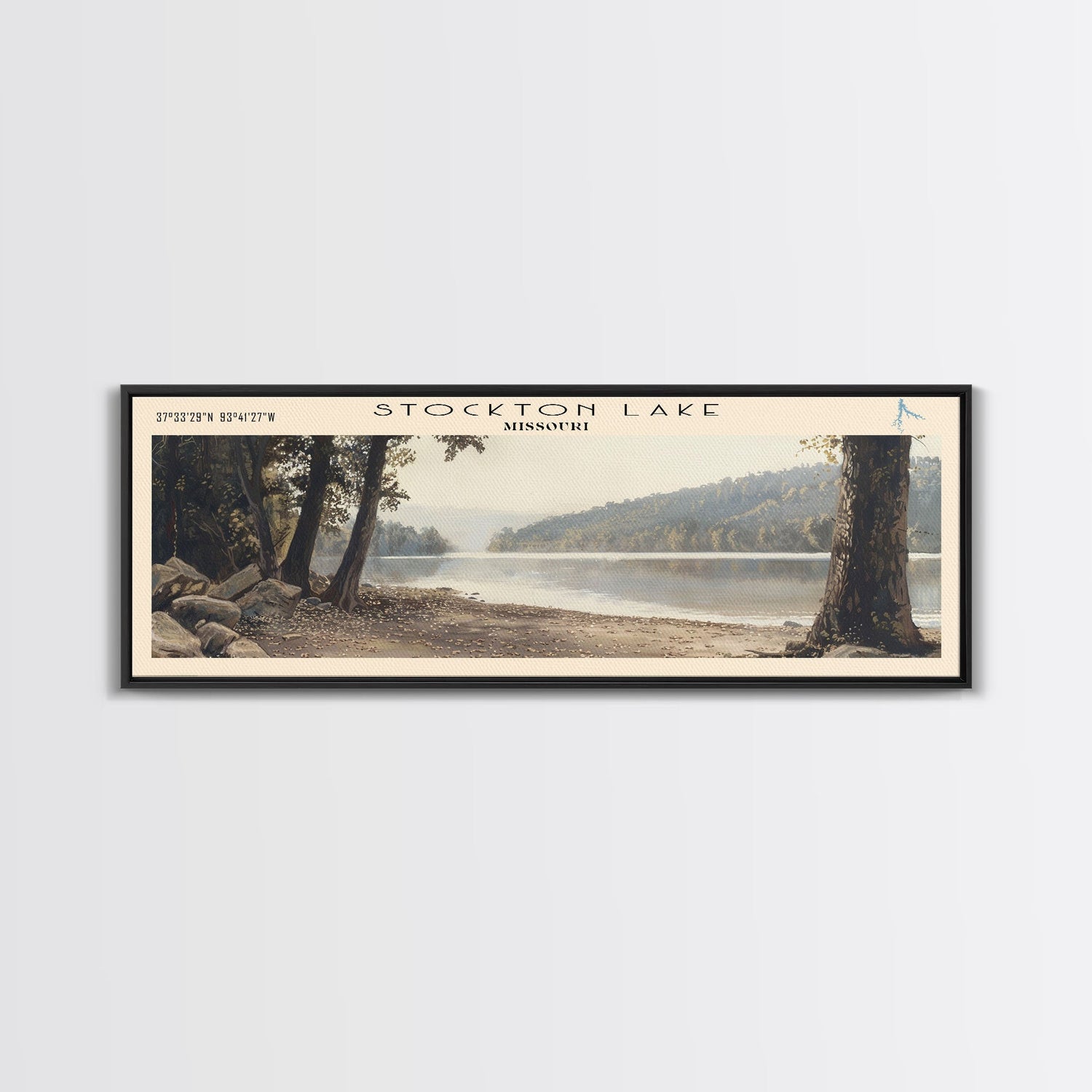 Stockton Lake Missouri Panoramic Framed Canvas Print, Lake House Decor, Wall Art, Travel Poster, Scenic Landscape, Bedroom Decor