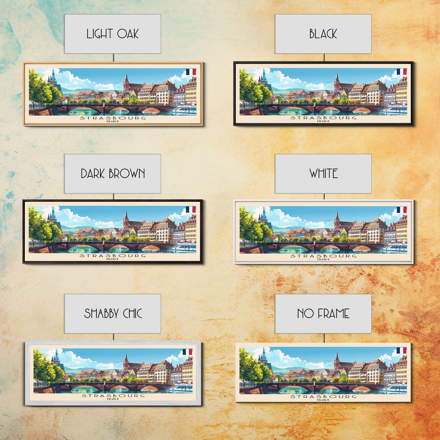 Strasbourg France Panoramic Travel Poster, Framed Canvas Print or Metal Wall Art, Travel Art, Home Decor, Panoramic Painting, Midcentury Art