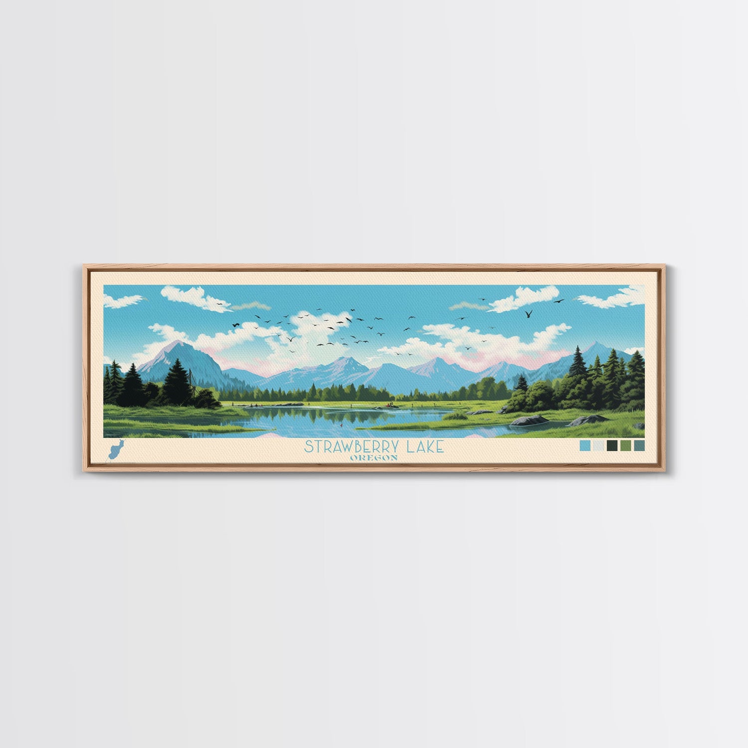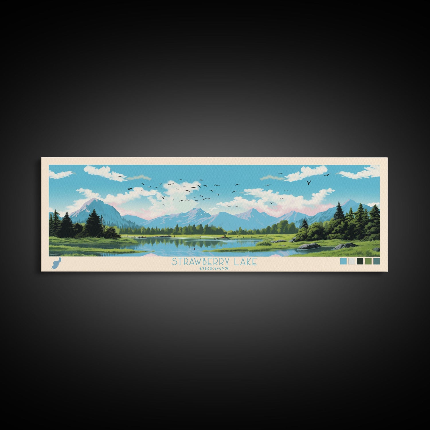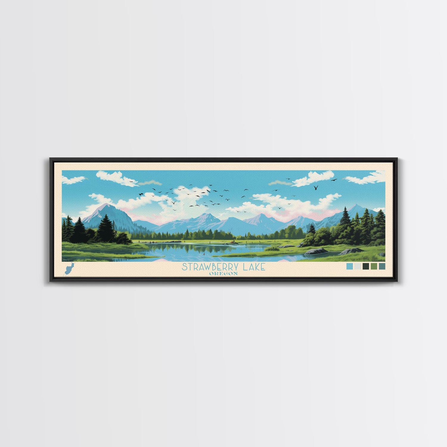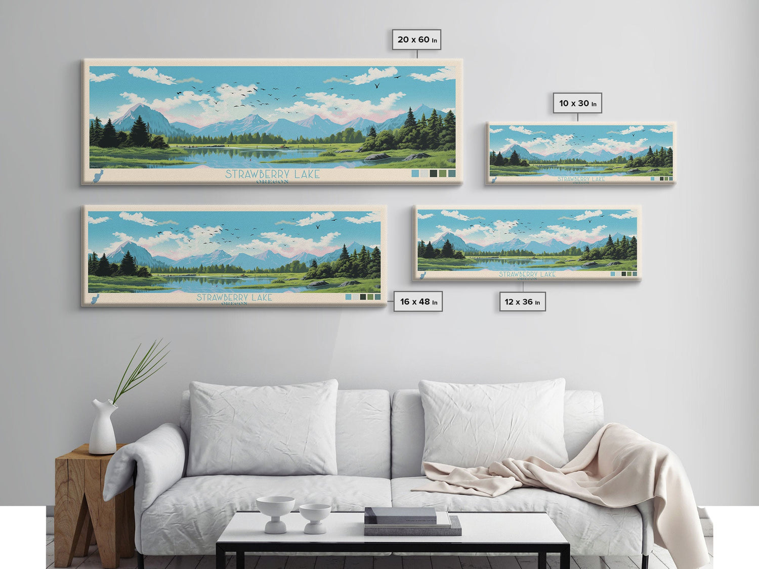 Strawberry Lake, Oregon Framed Canvas Print, Lake House Art, Midcentury Modern Decor, Pop Art, Travel Poster, Living Room Wall Art - 10x30 Inches / No Frame - Stretched Canvas Only está agotado y se enviará tan pronto como vuelva a estar disponible.