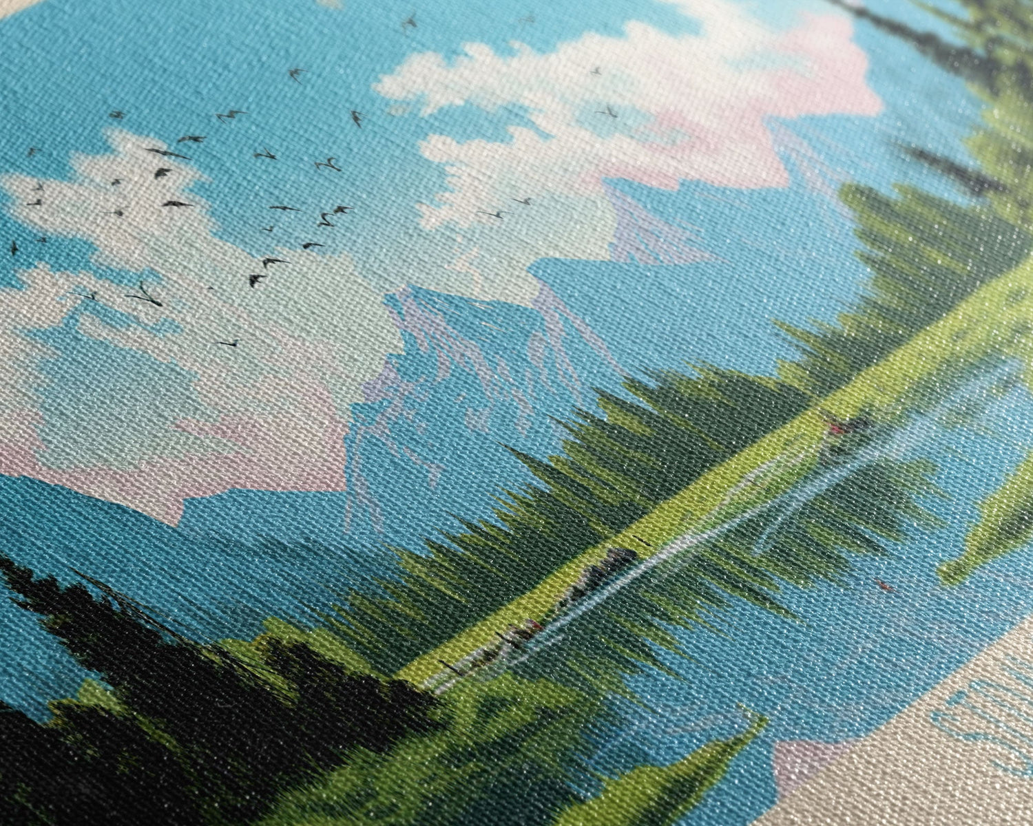 Strawberry Lake, Oregon Framed Canvas Print, Lake House Art, Midcentury Modern Decor, Pop Art, Travel Poster, Living Room Wall Art